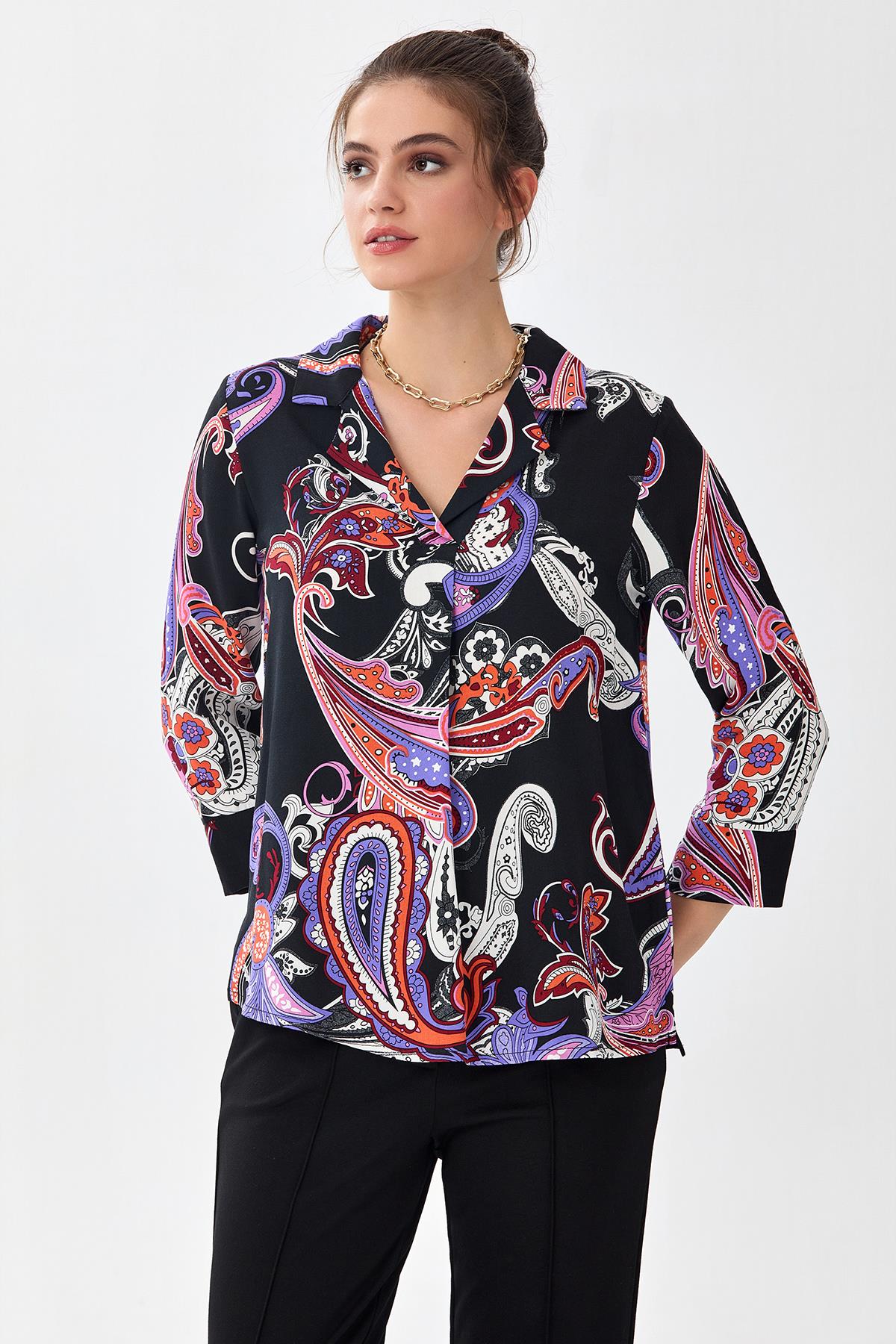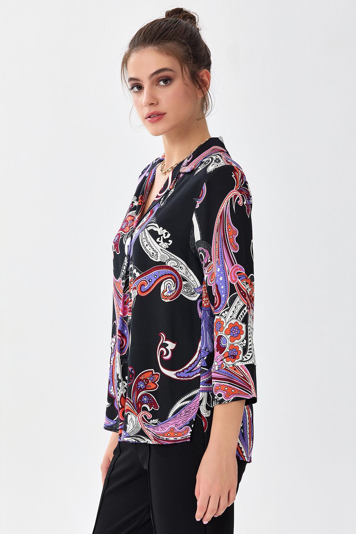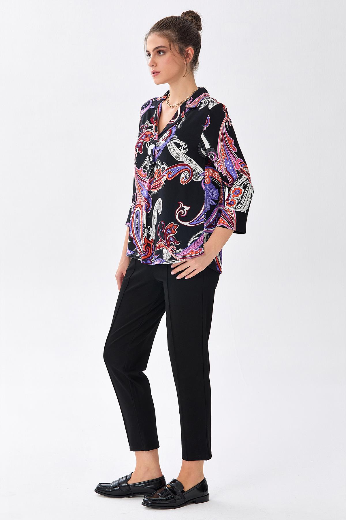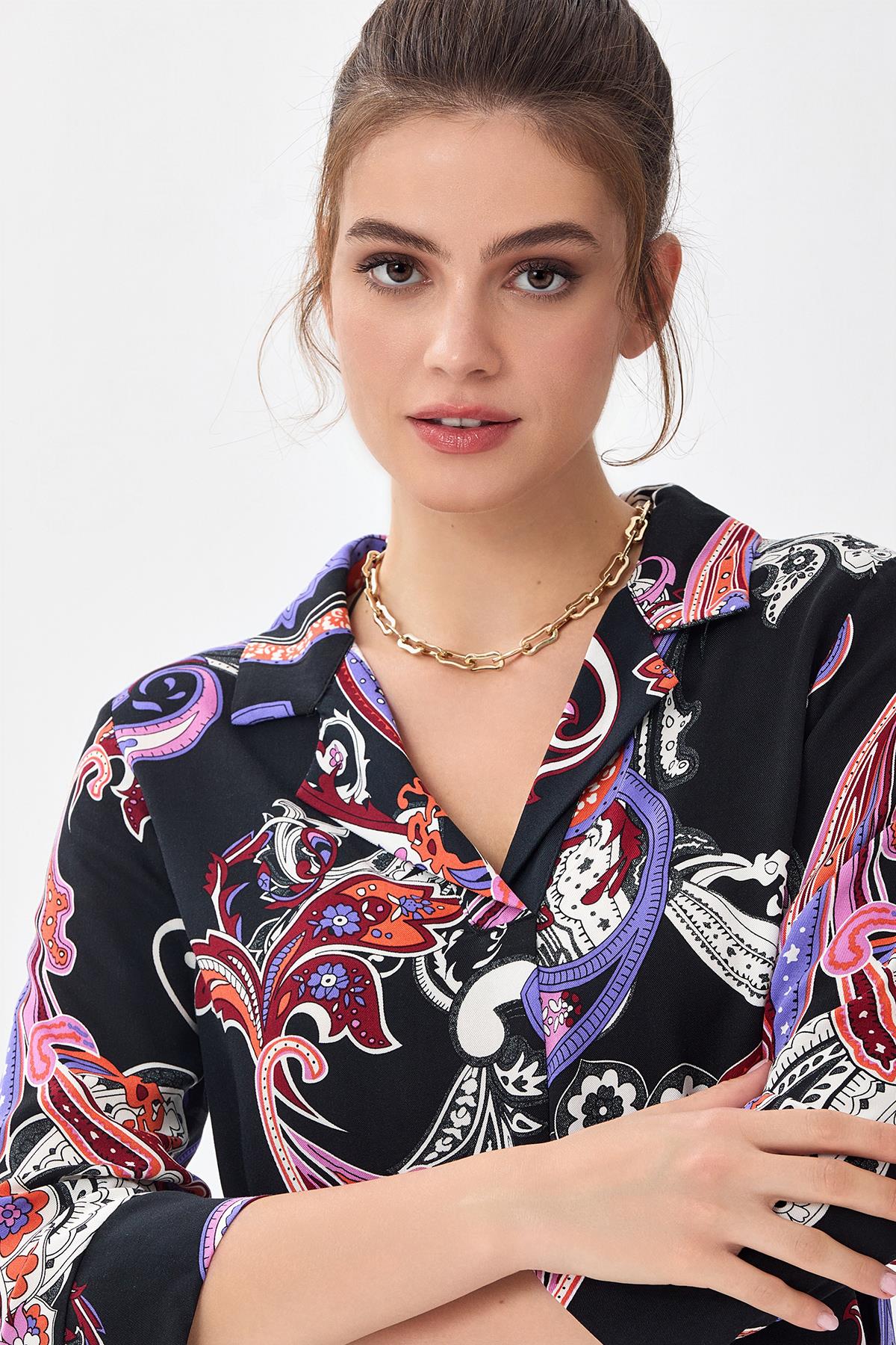 Gömlek Yaka Önü Pileli Desenli Bluz 256-3020