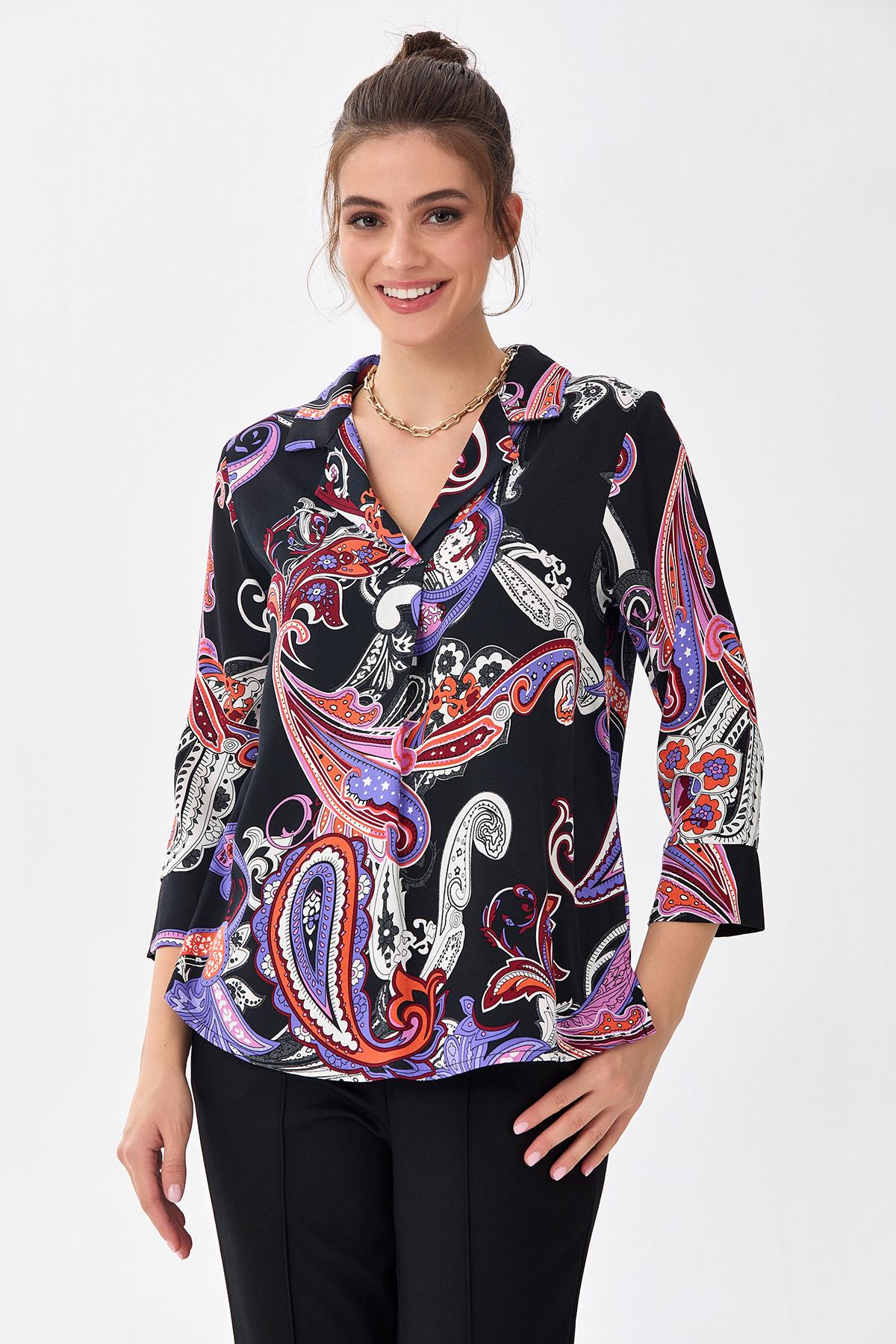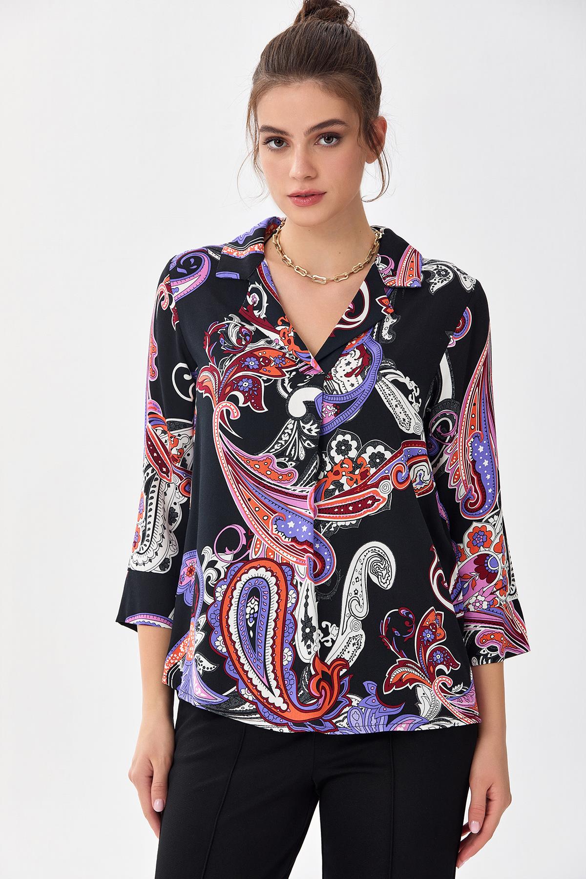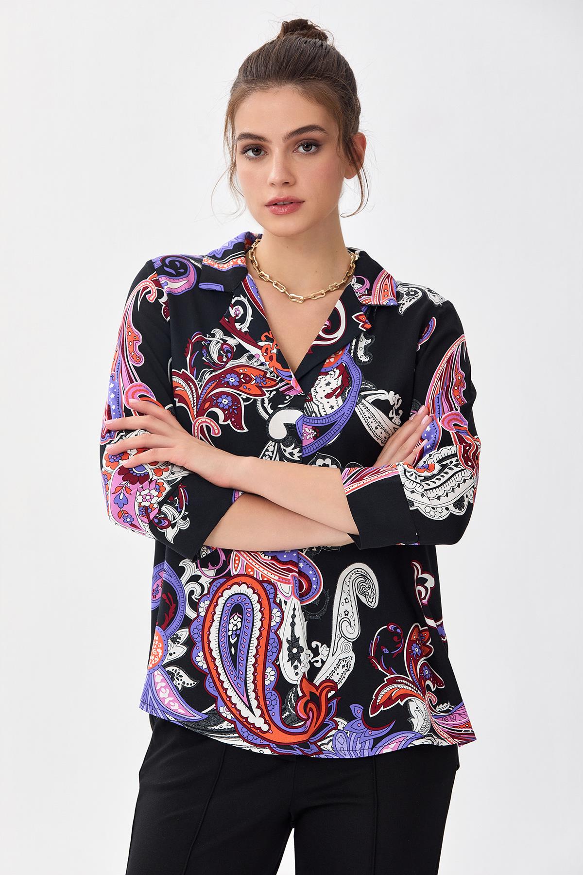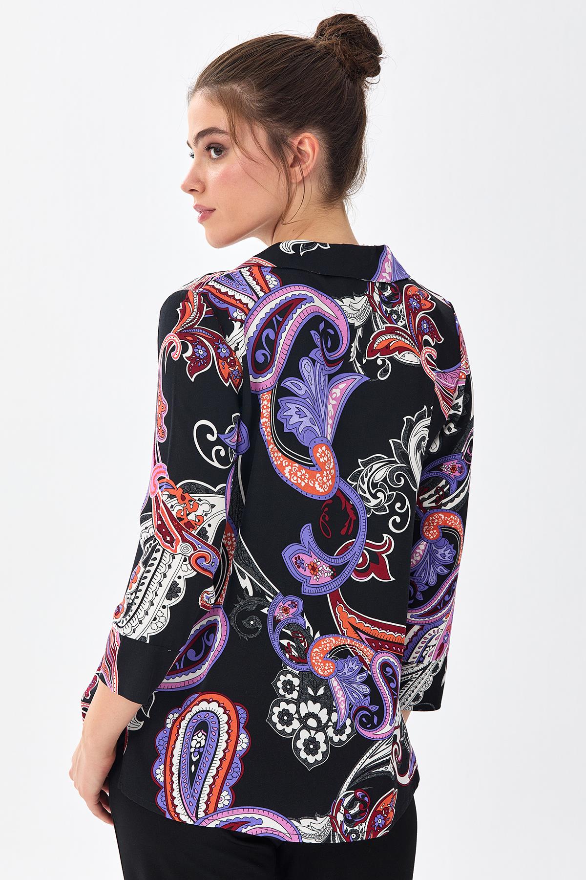 Gömlek Yaka Önü Pileli Desenli Bluz 256-3020