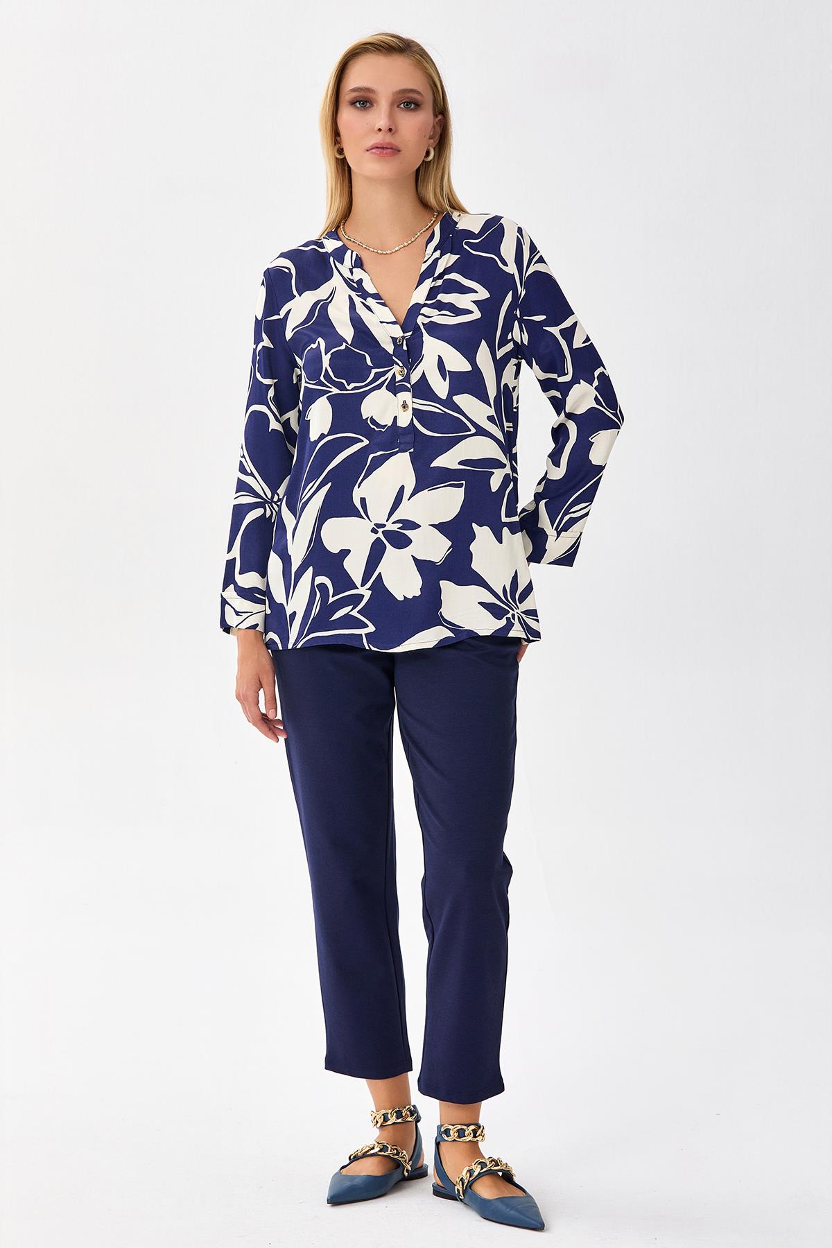 Hakim Yaka Önü Düğmeli Bluz 256-3007