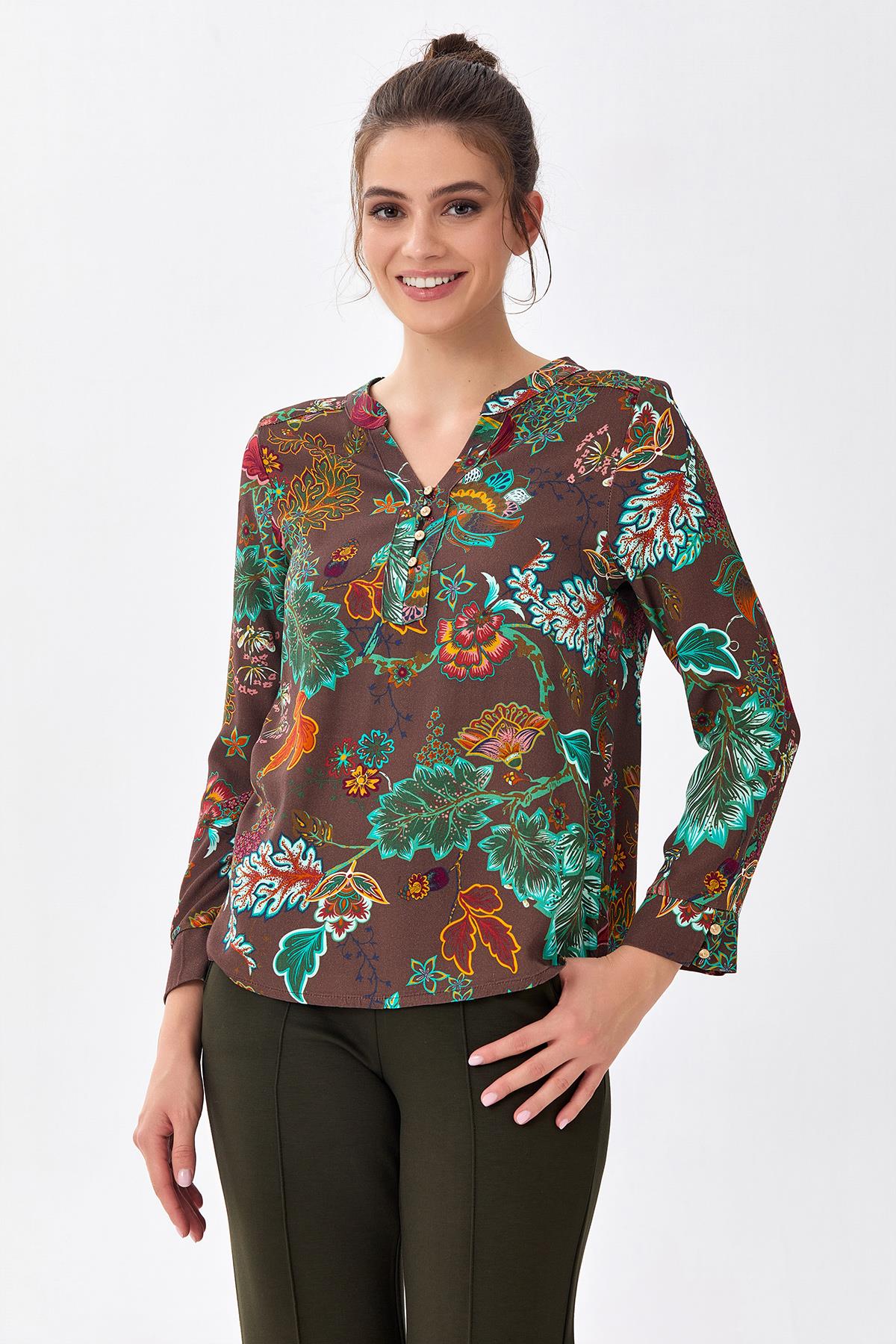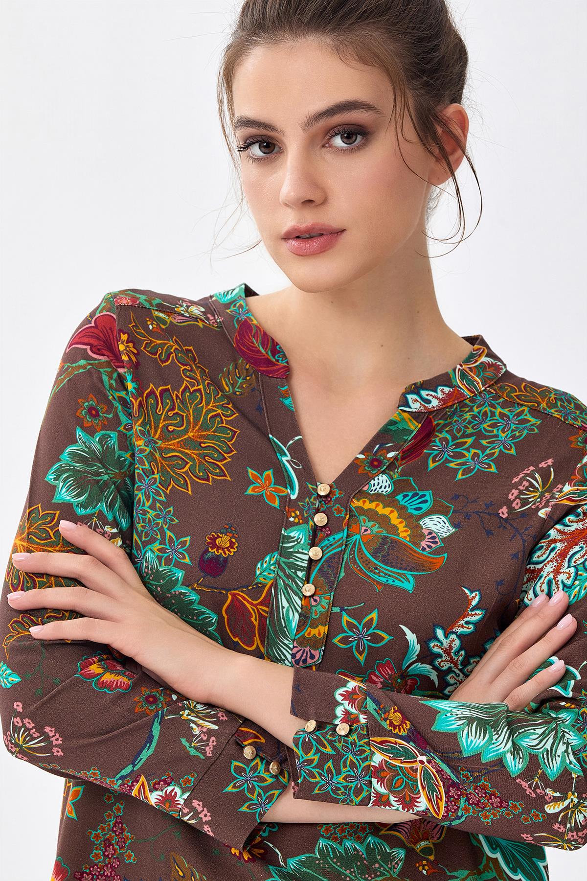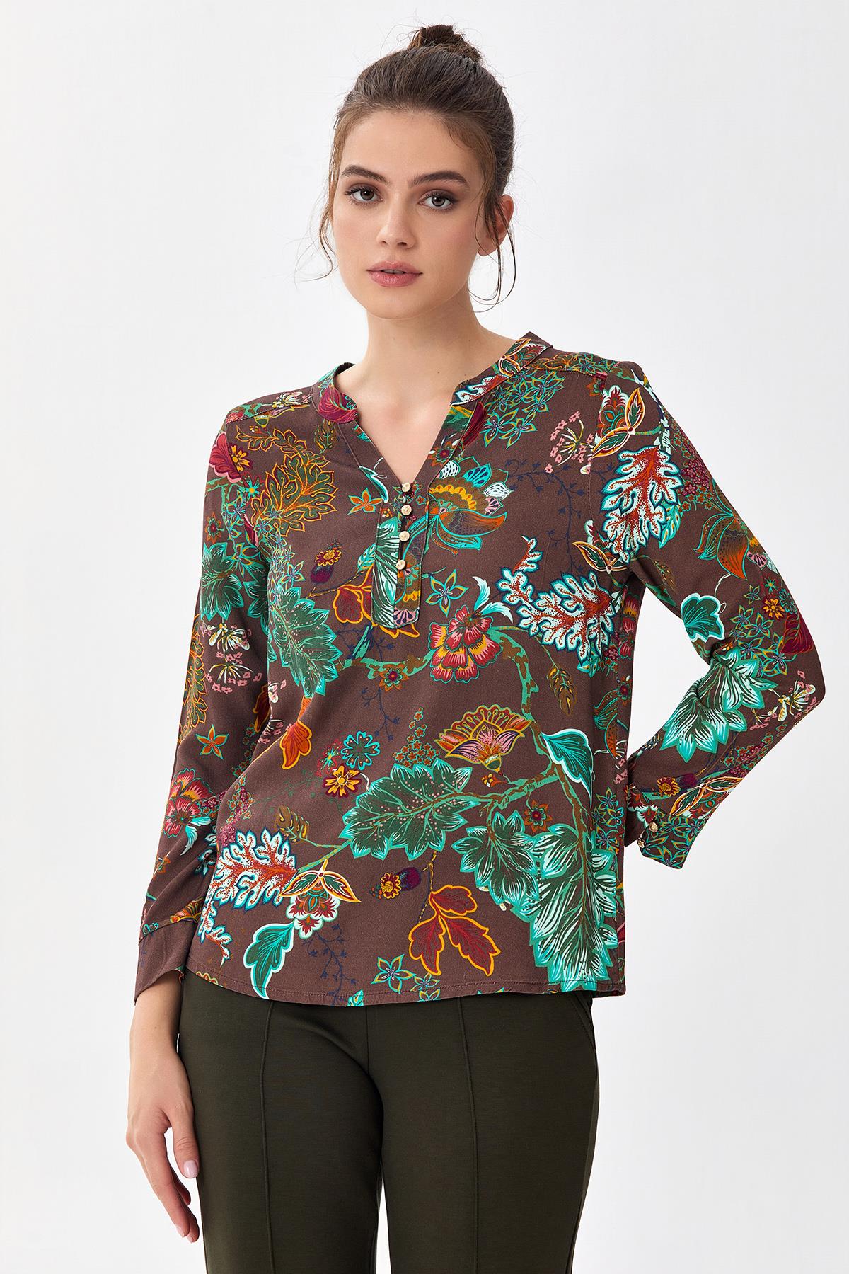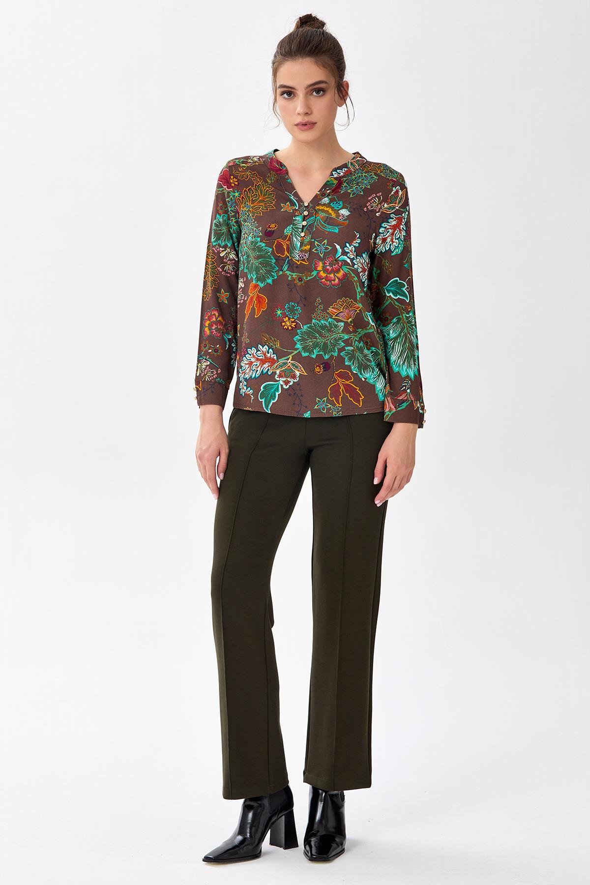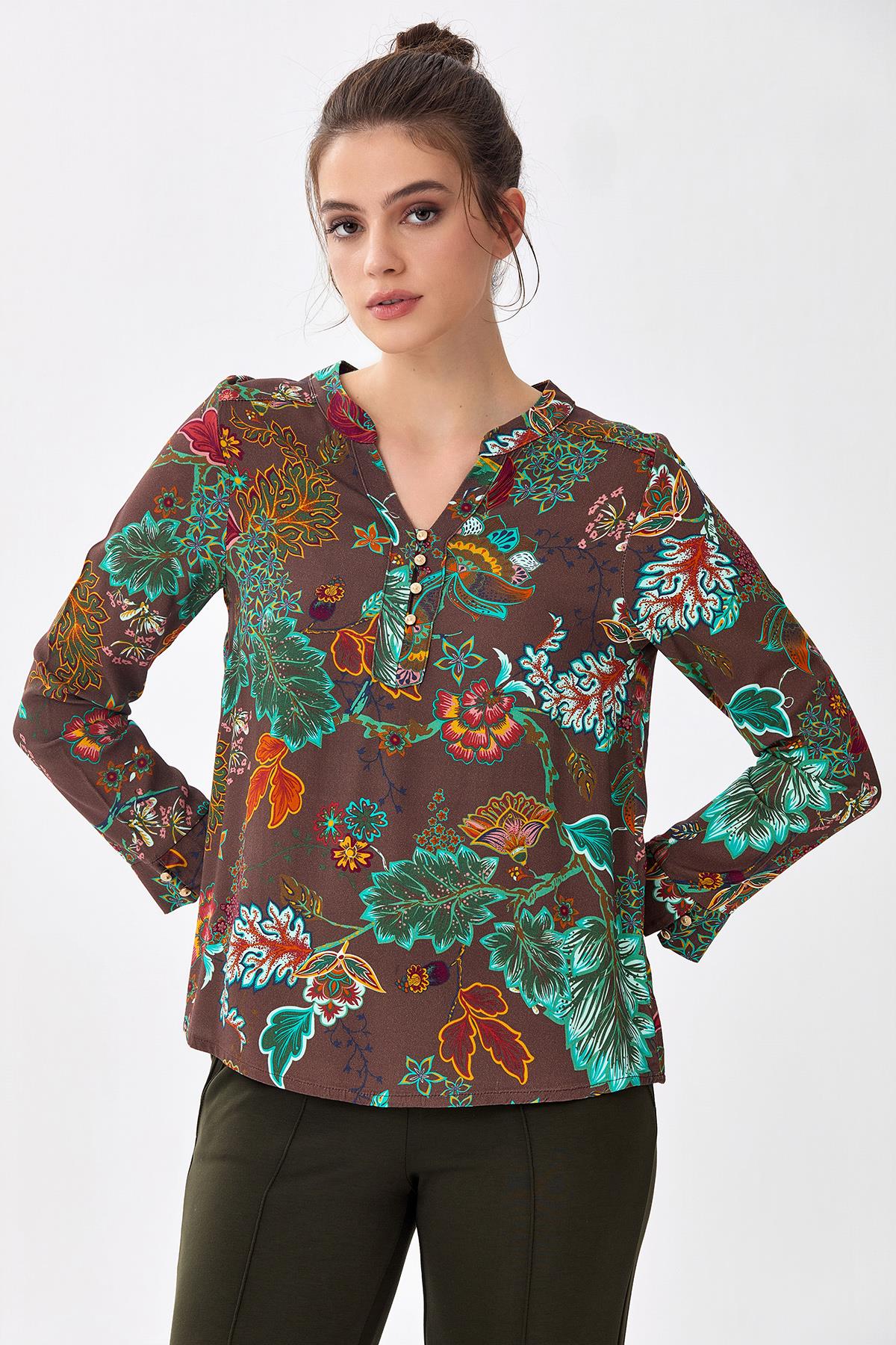 Hakim Yaka Uzun Kol Desenli Bluz 256-3014