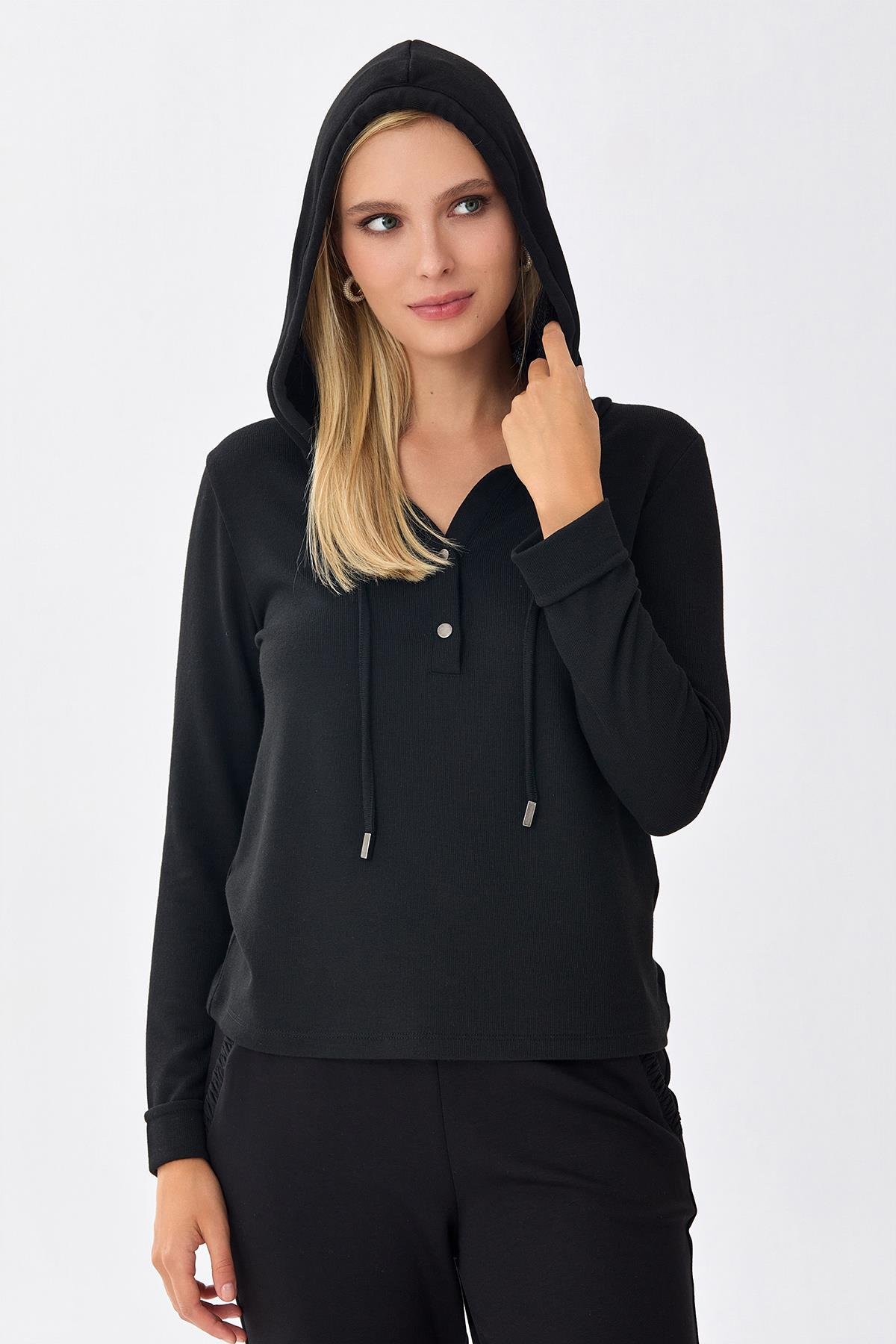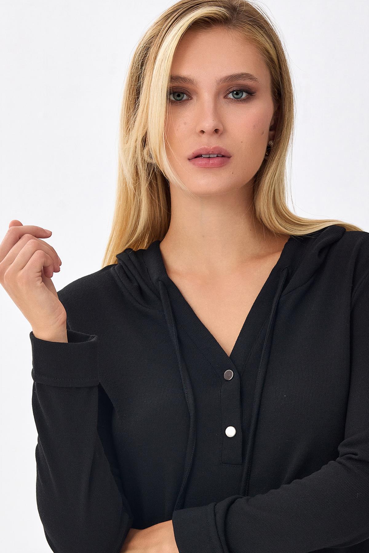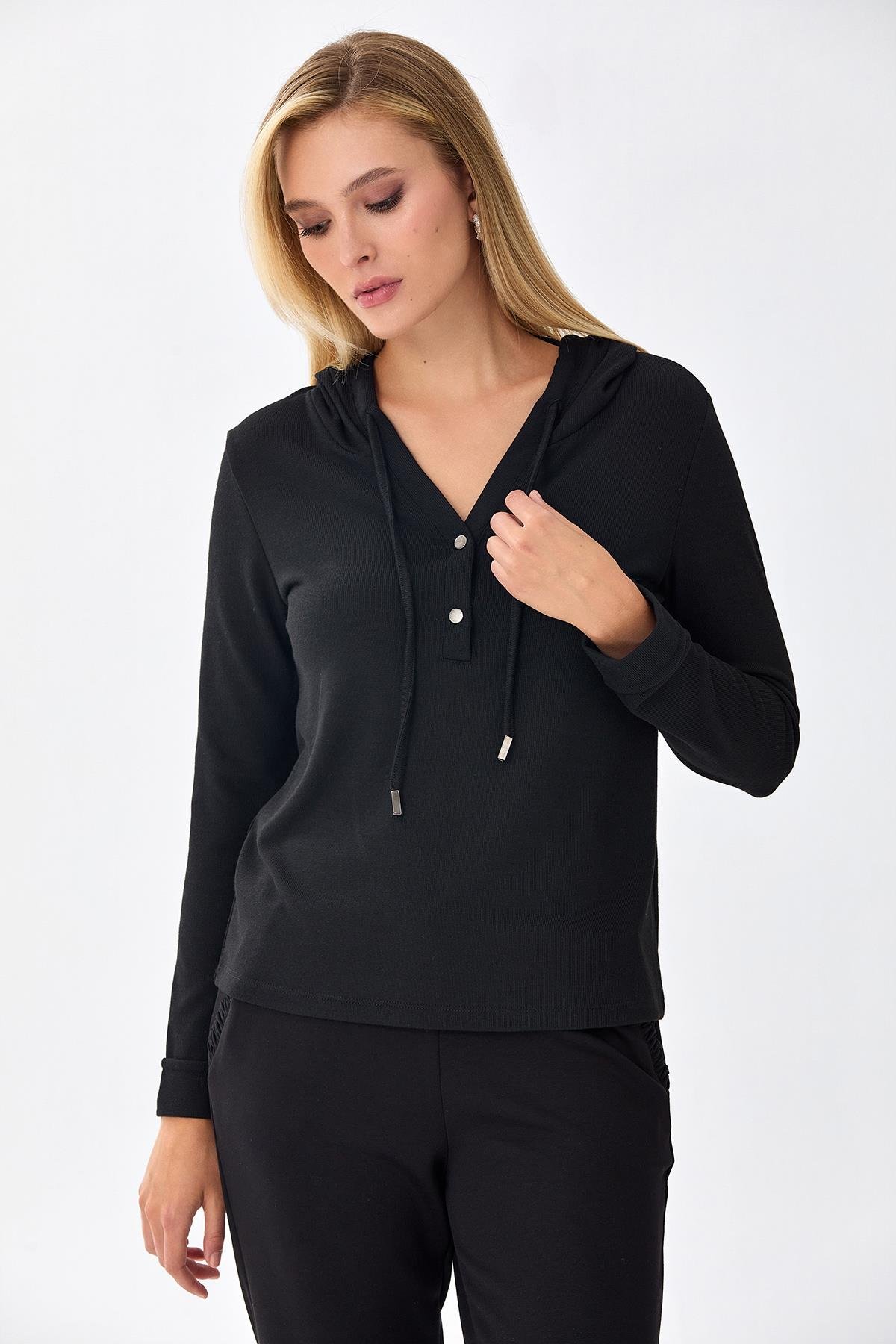 Önü Çıtçıtlı Kapüşonlu Bluz 256-1001