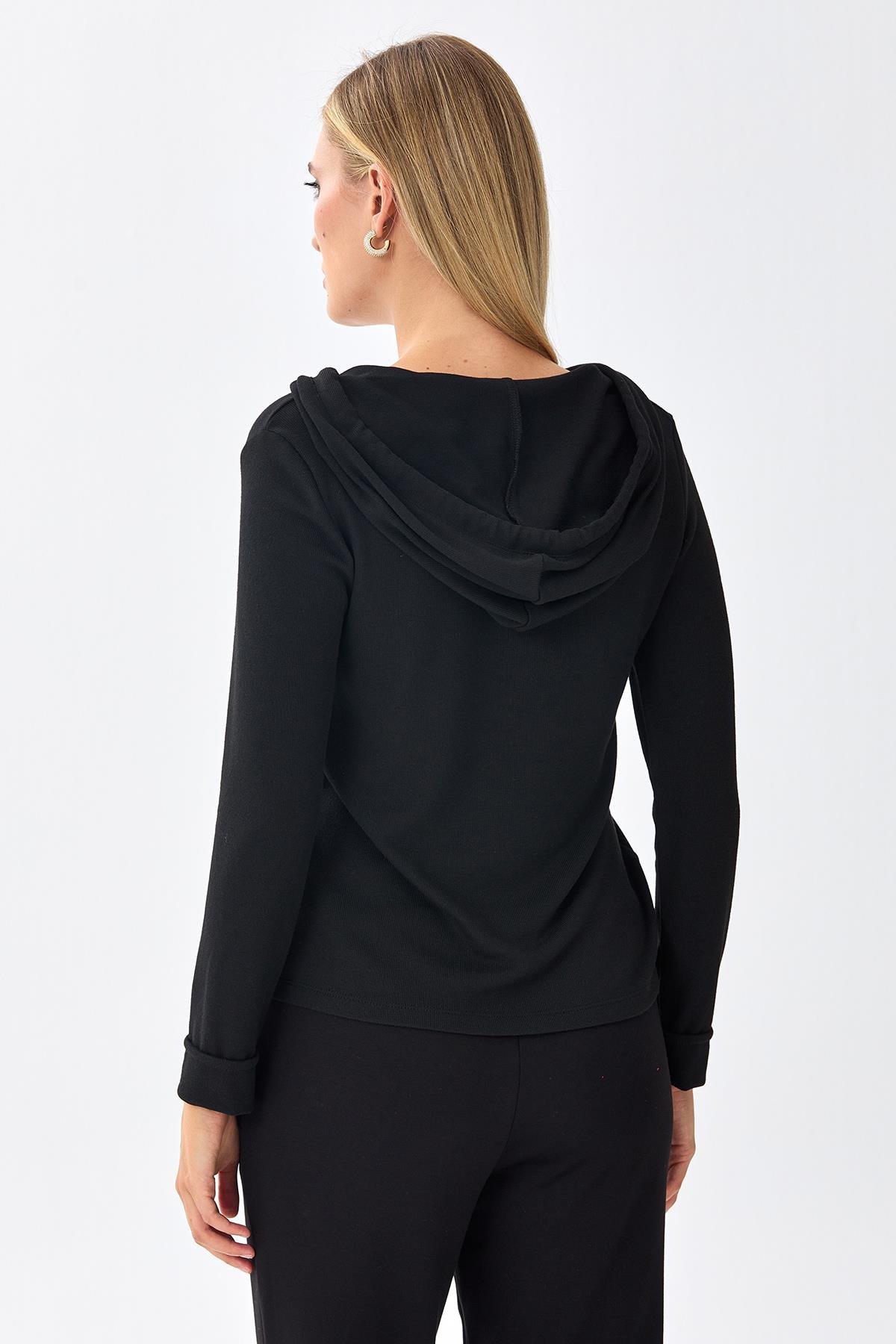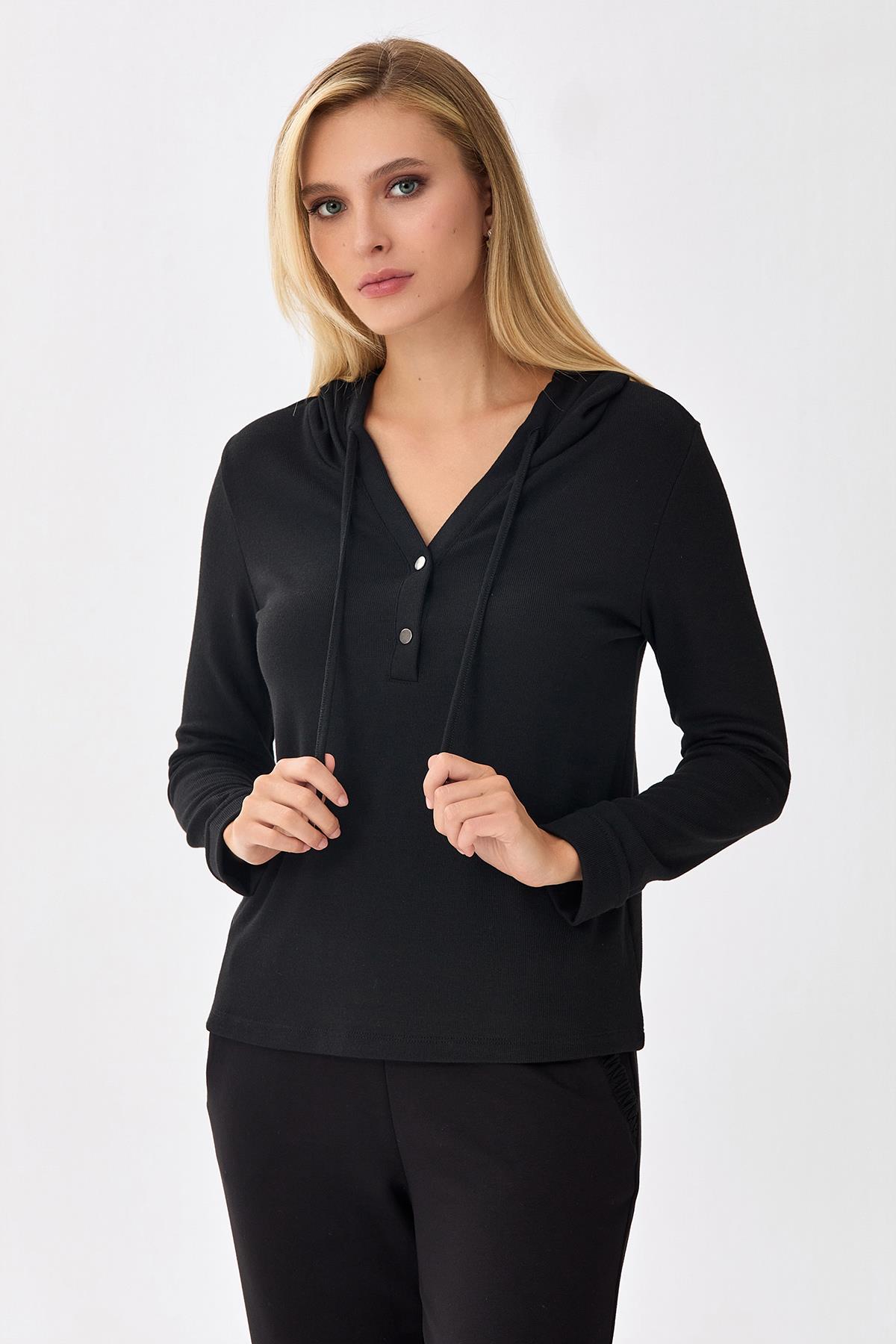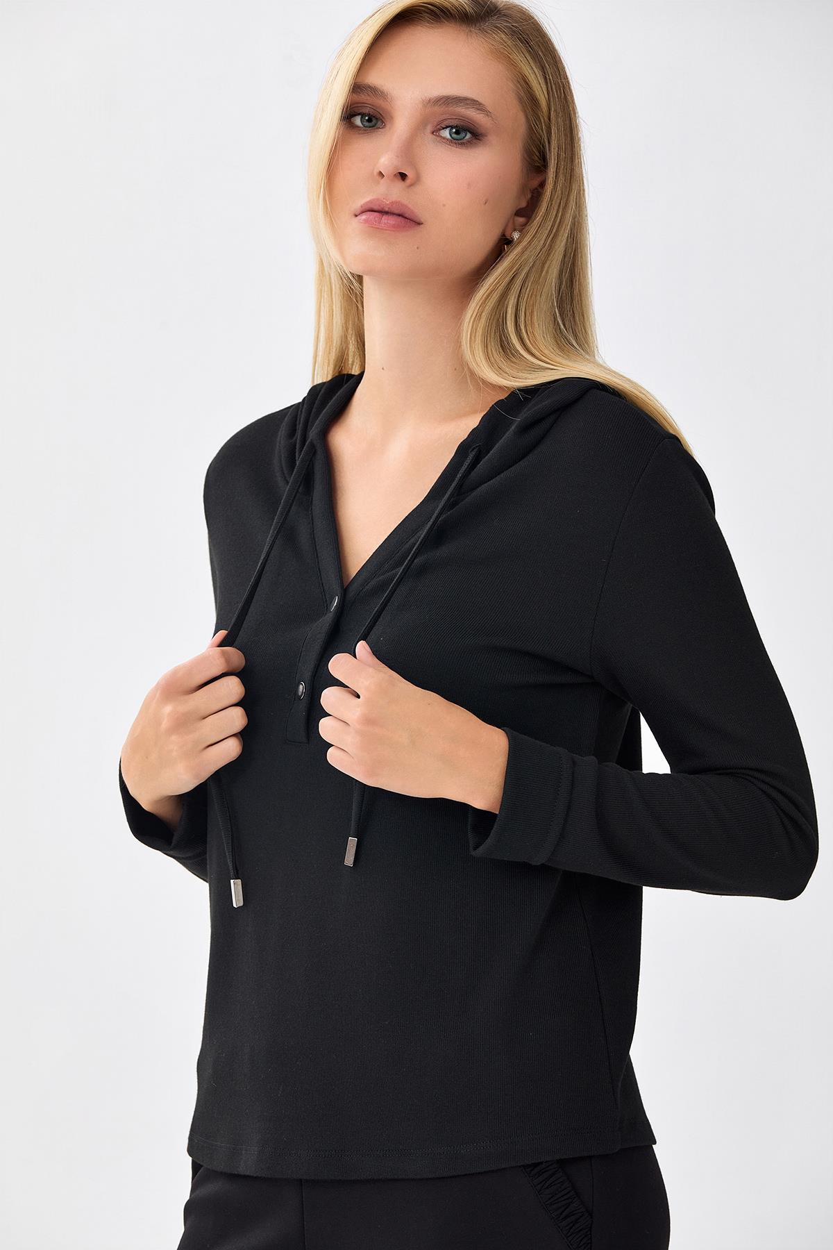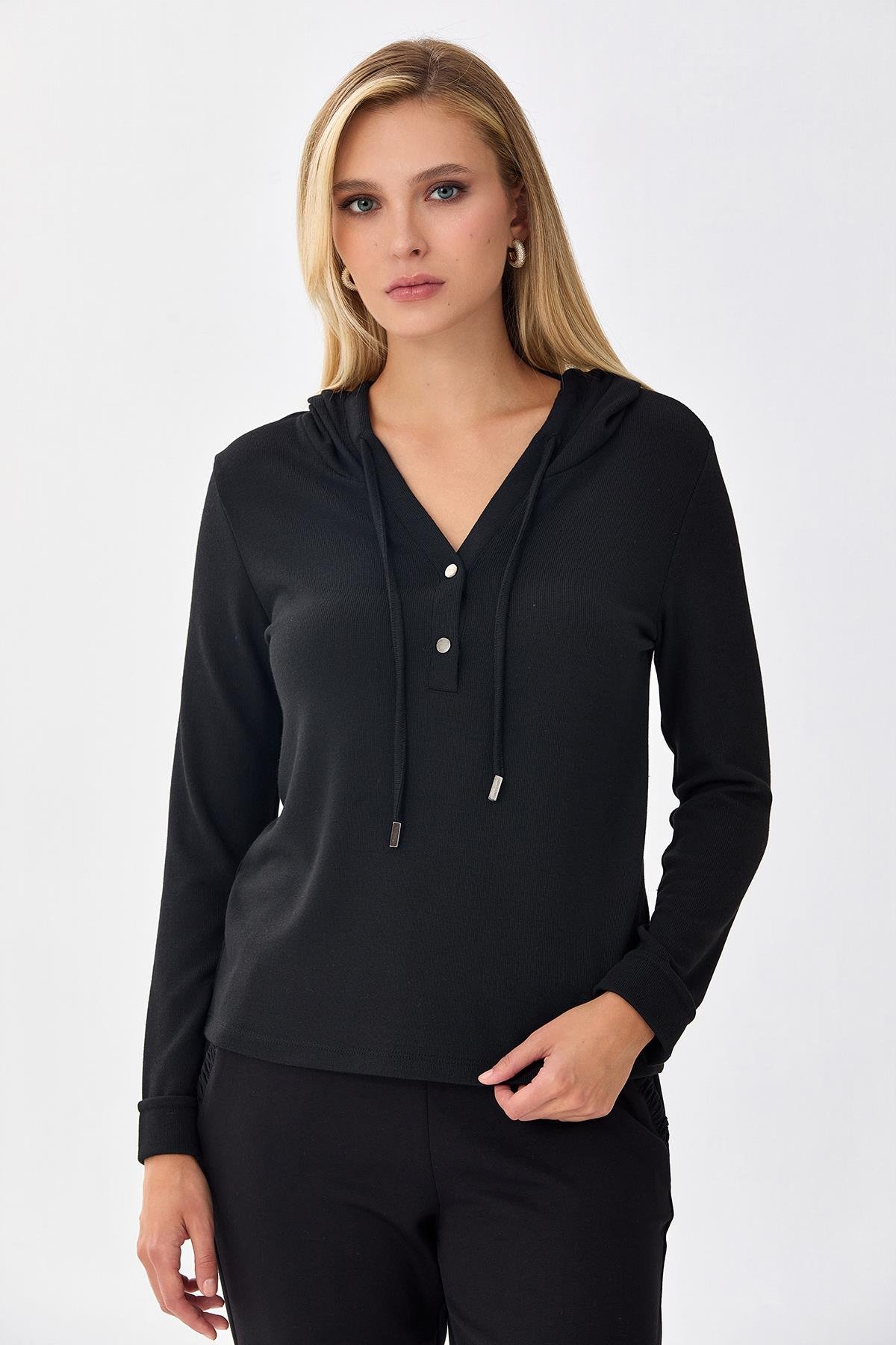 Önü Çıtçıtlı Kapüşonlu Bluz 256-1001