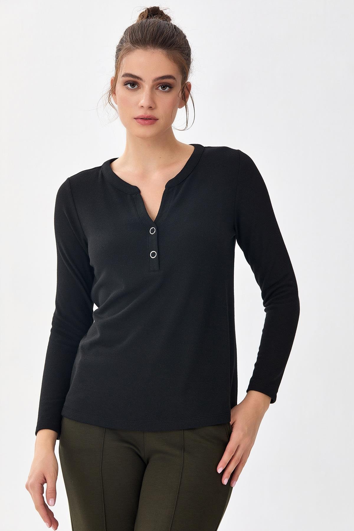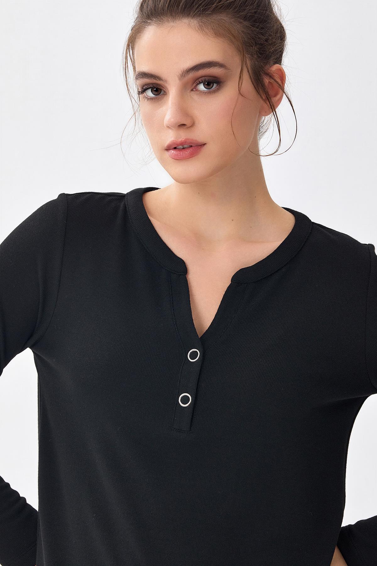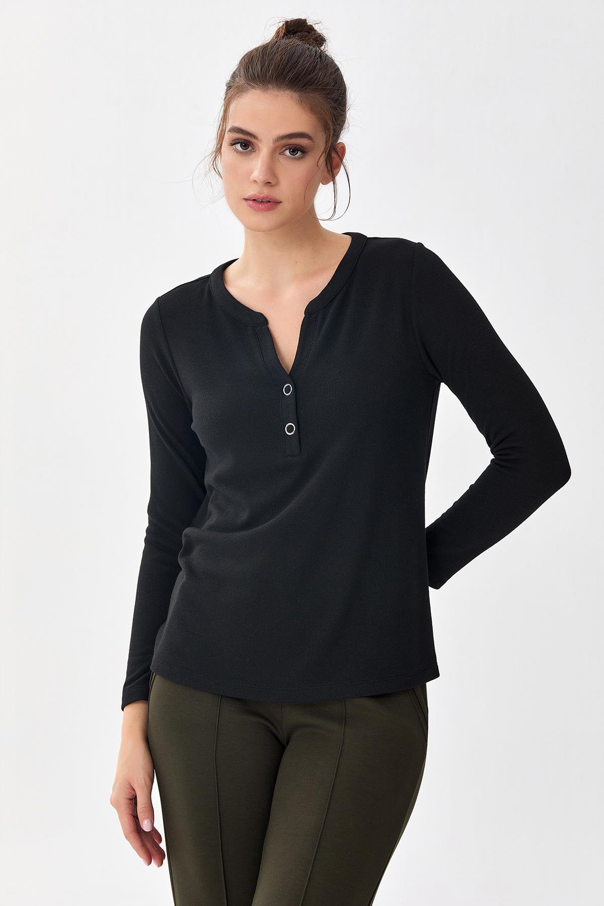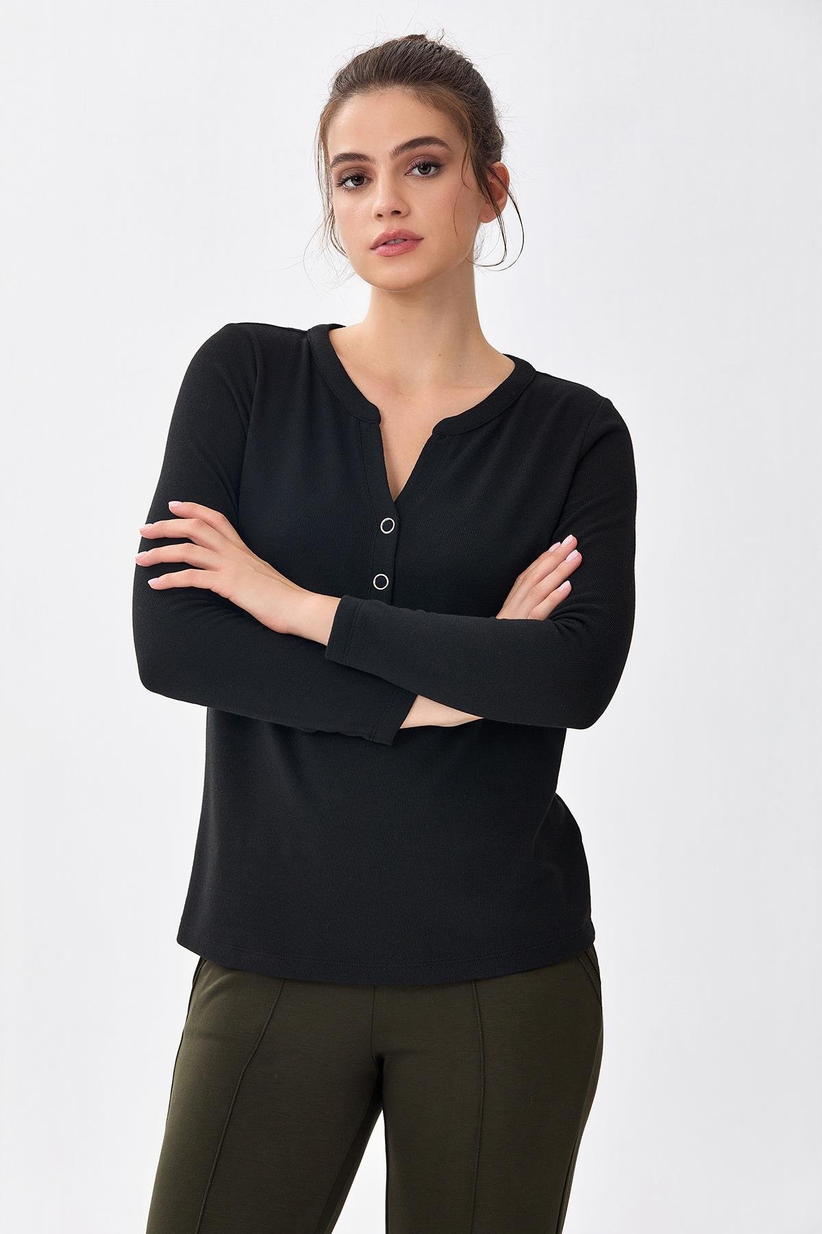 Önü Çıtçıtlı Uzun Kol Bluz 256-1002