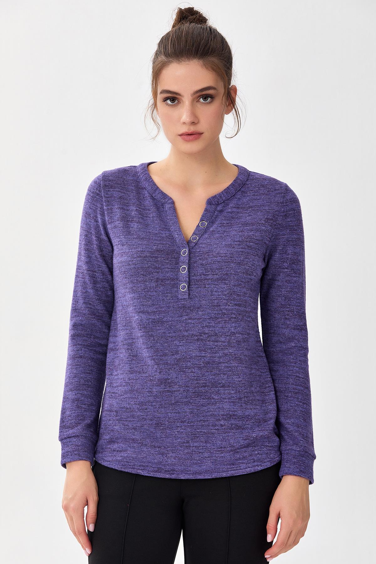 Önü Çıtçıtlı Uzun Kol Triko Bluz 256-1701