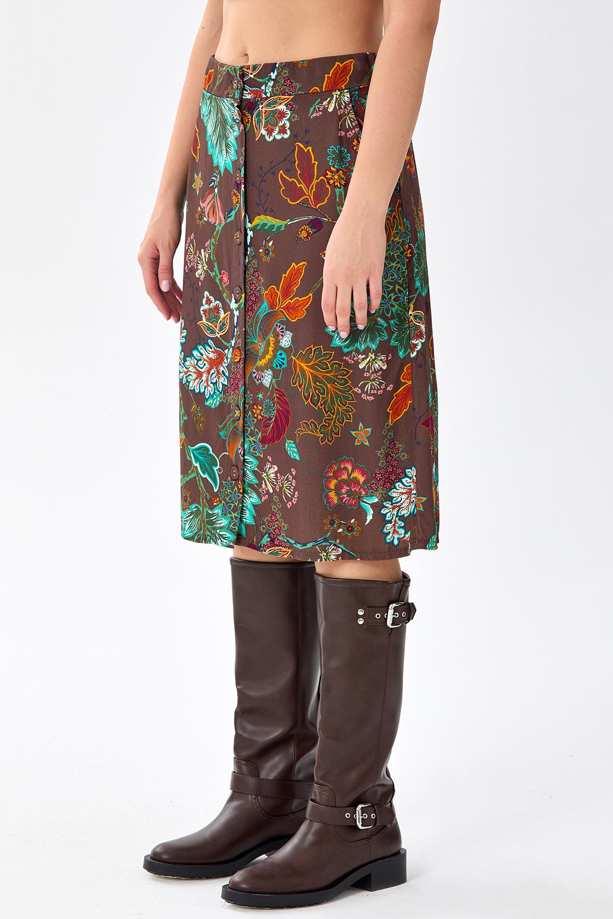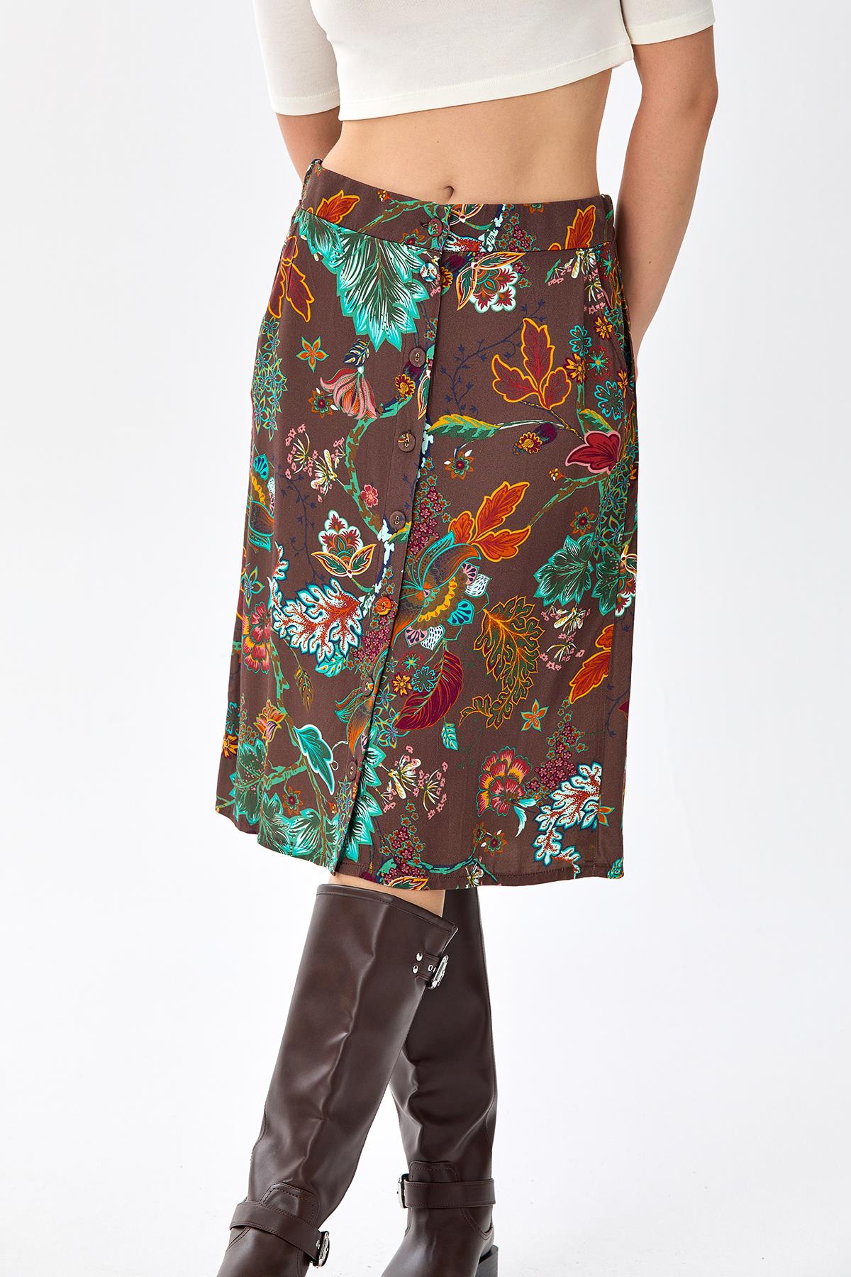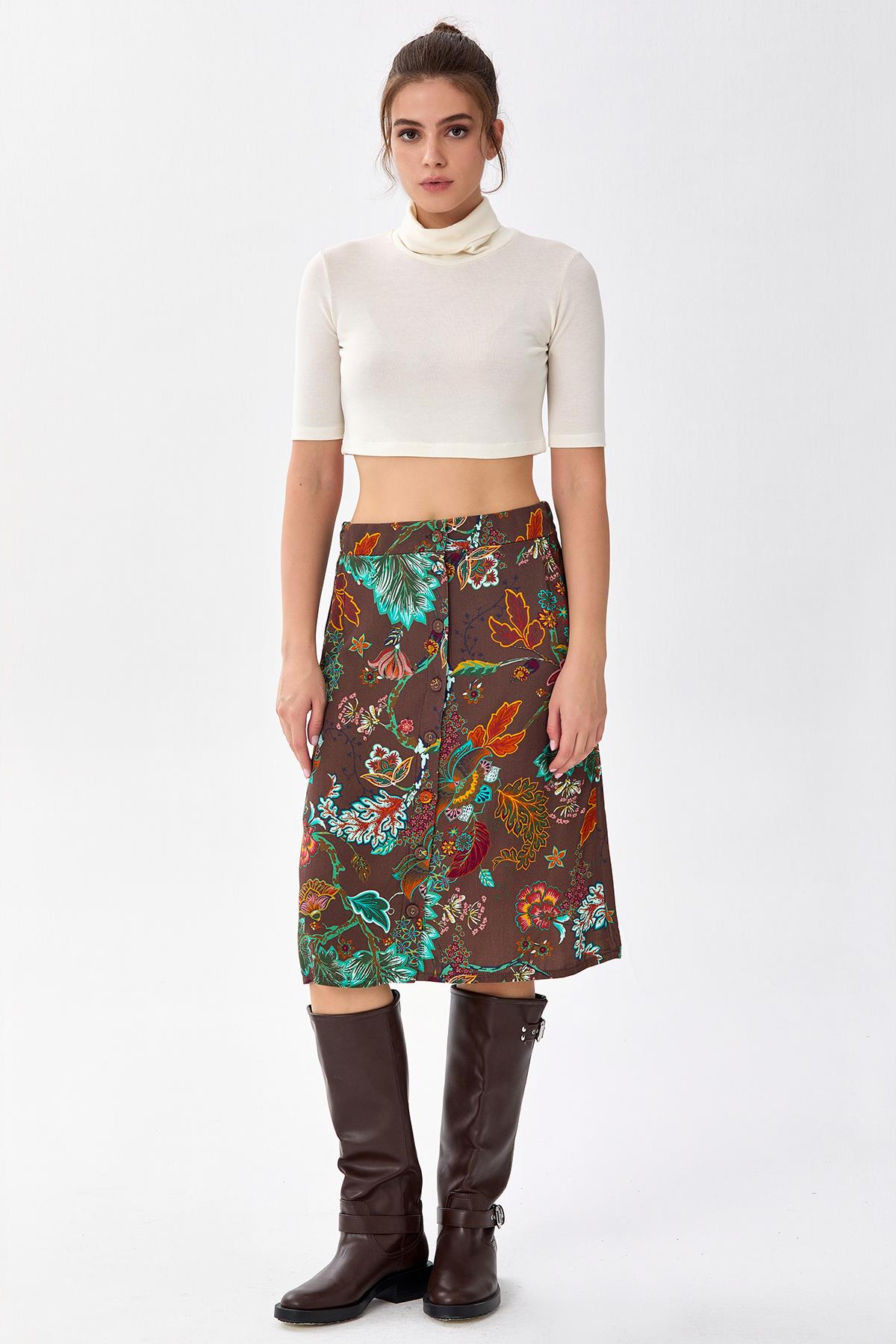 Önü Düğmeli Cepli Midi Boy Etek 256-3501