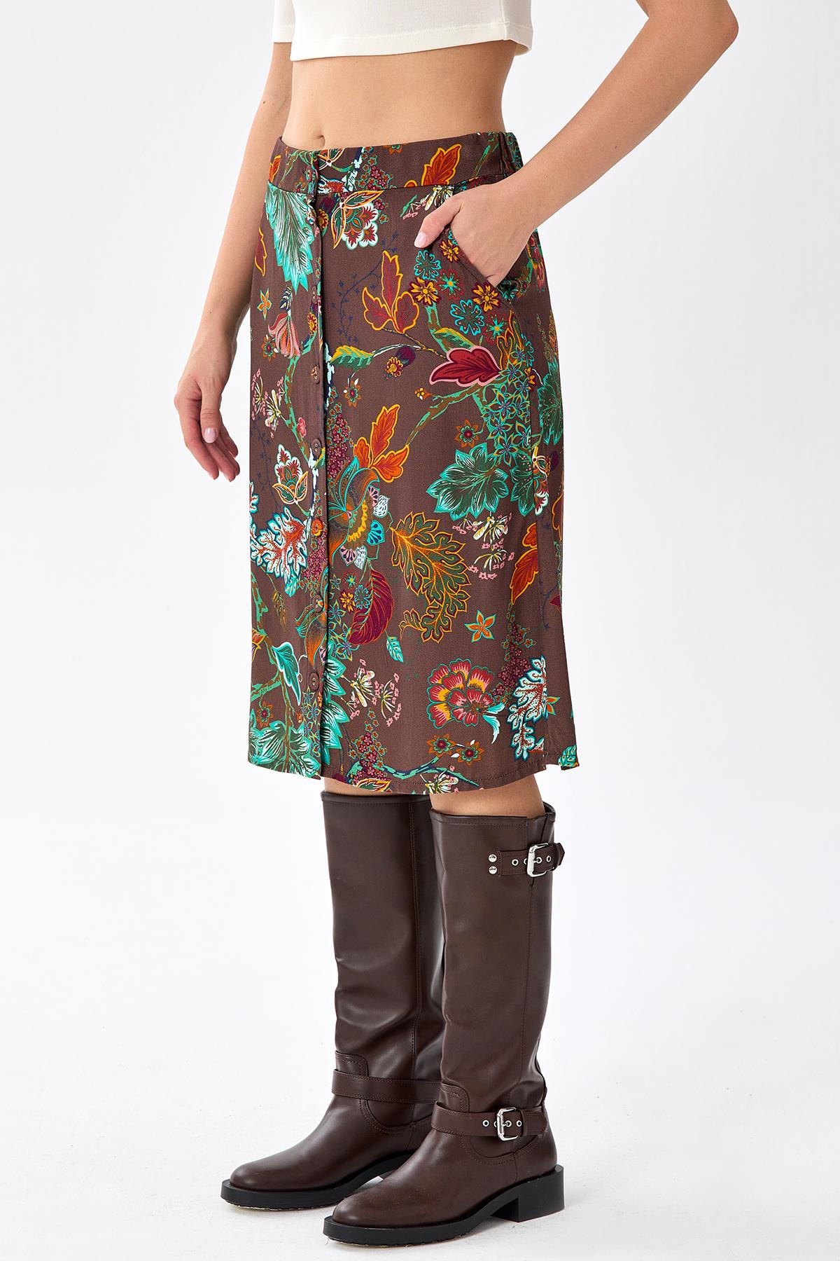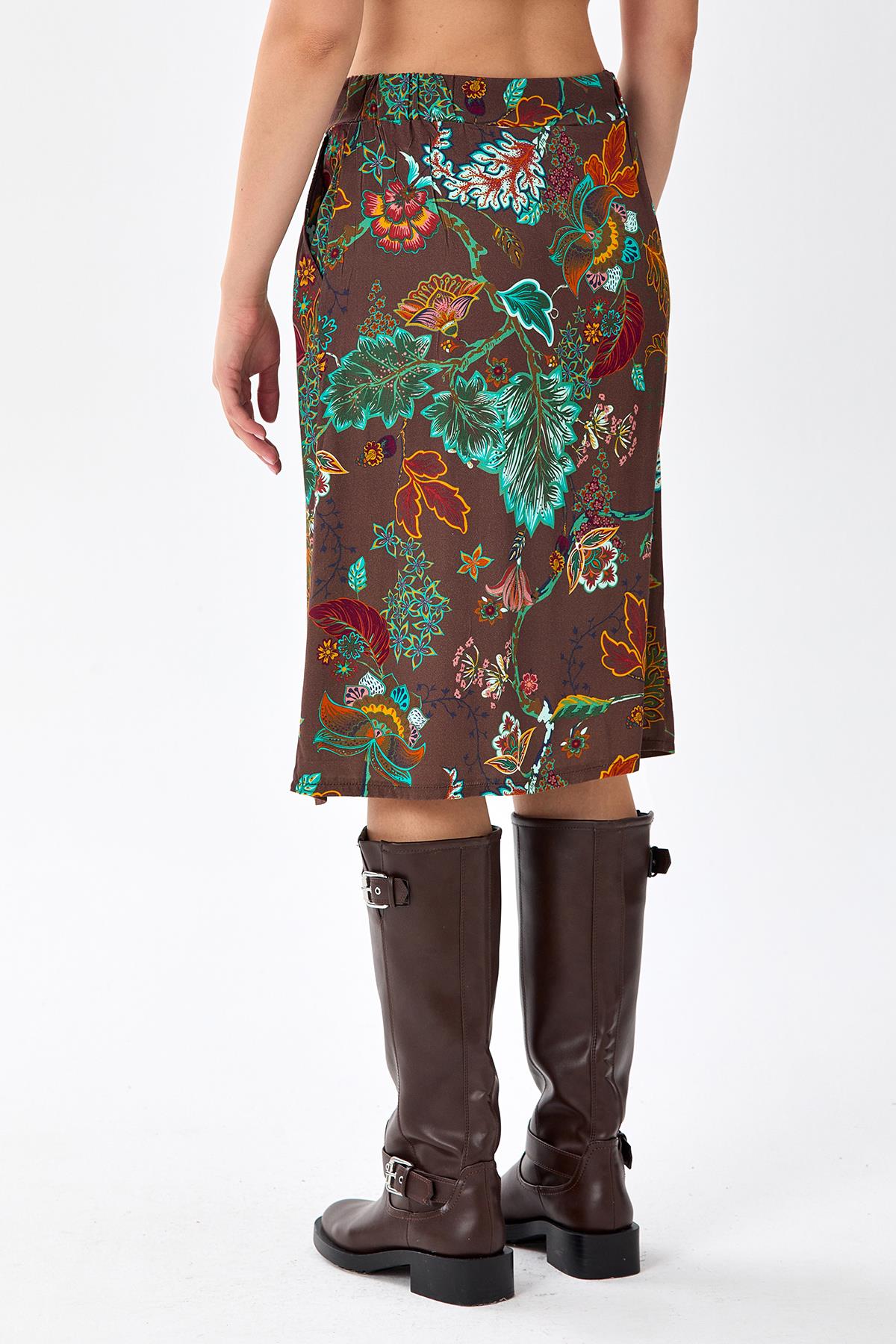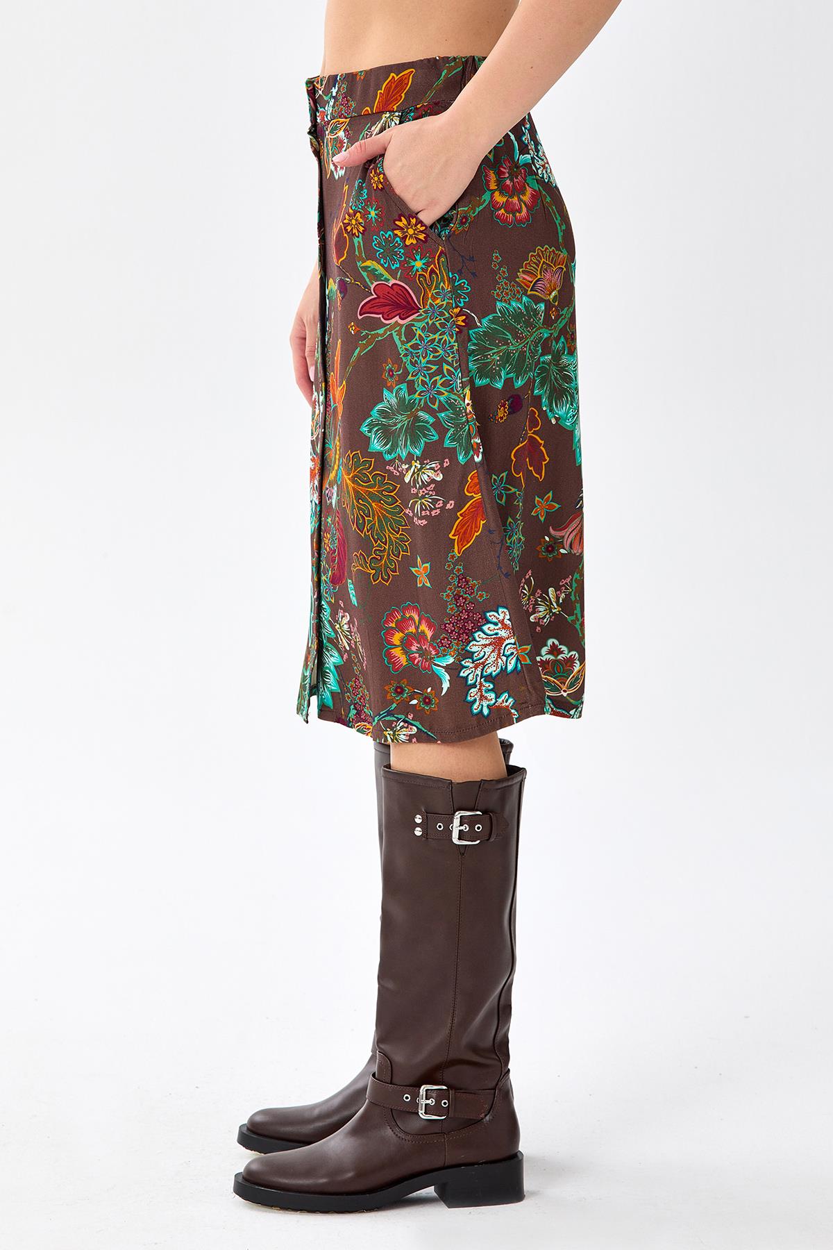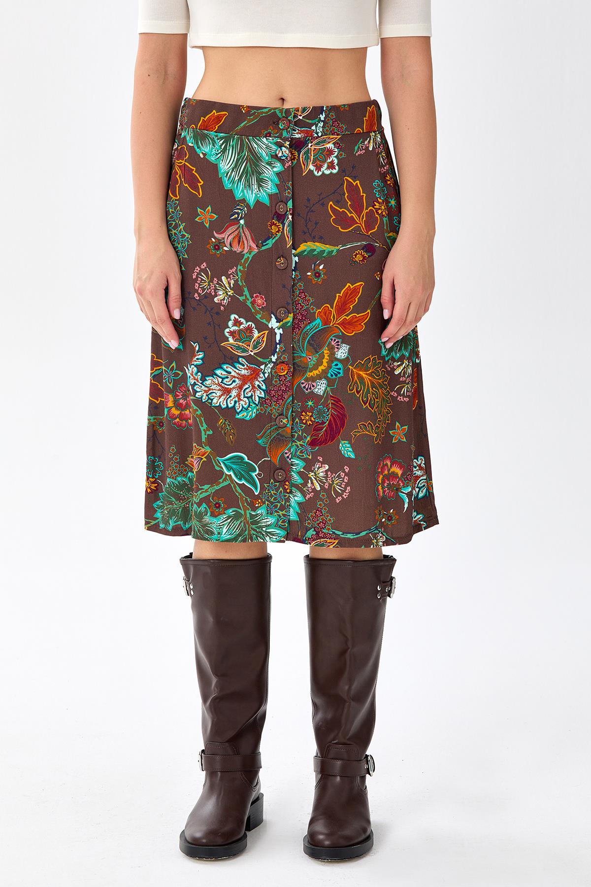 Önü Düğmeli Cepli Midi Boy Etek 256-3501