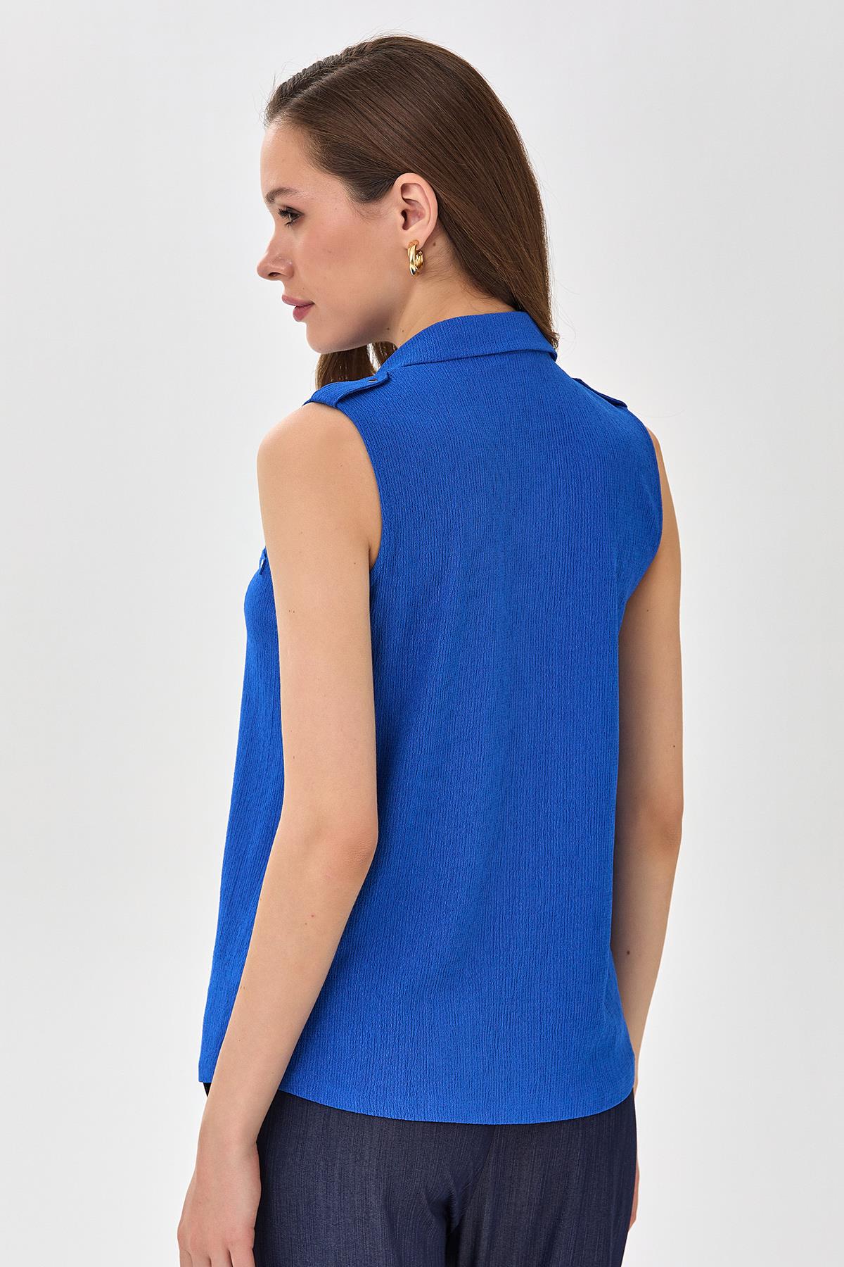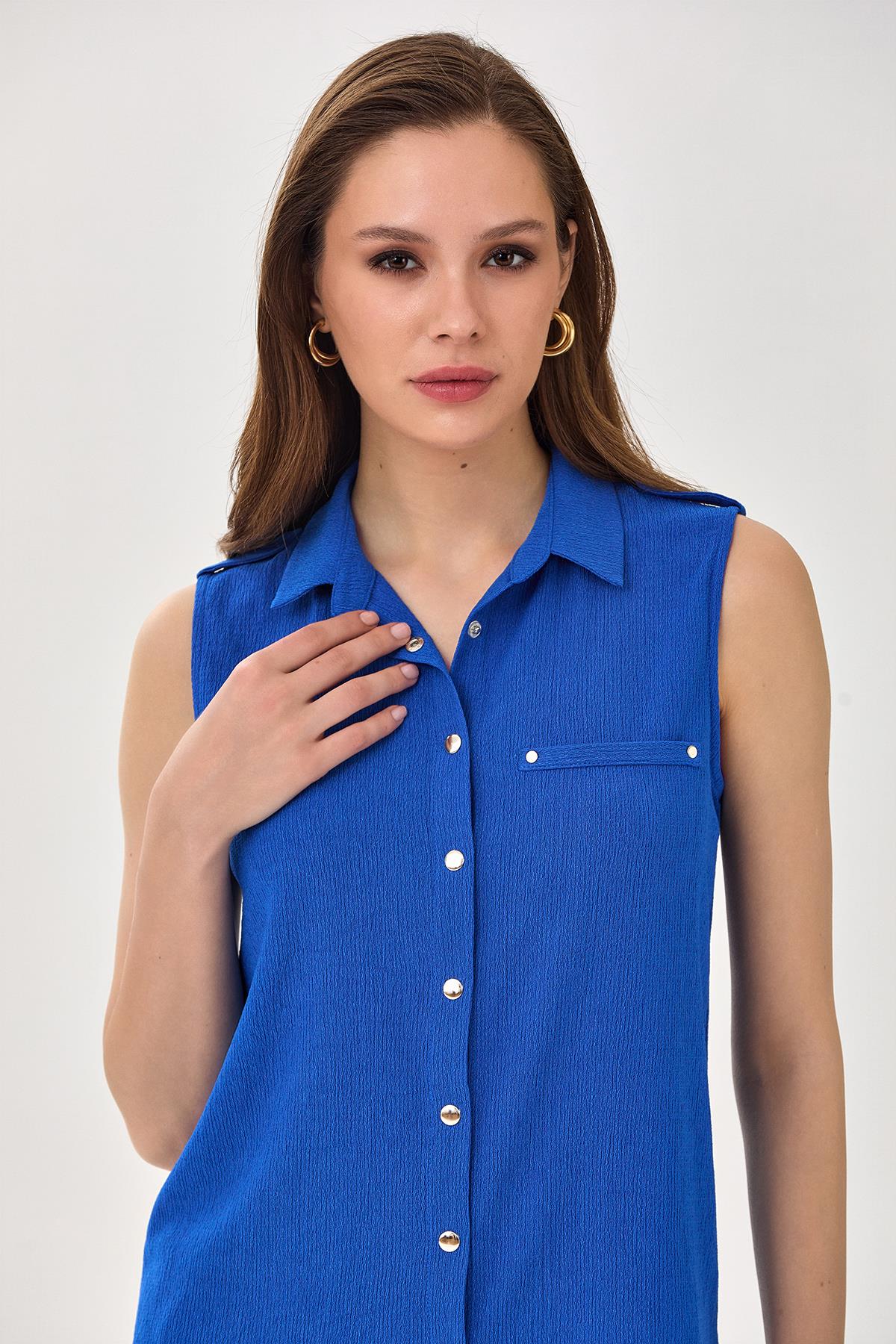 Polo Yaka Önü Çıtçıtlı Apoletli Bluz 025-1026