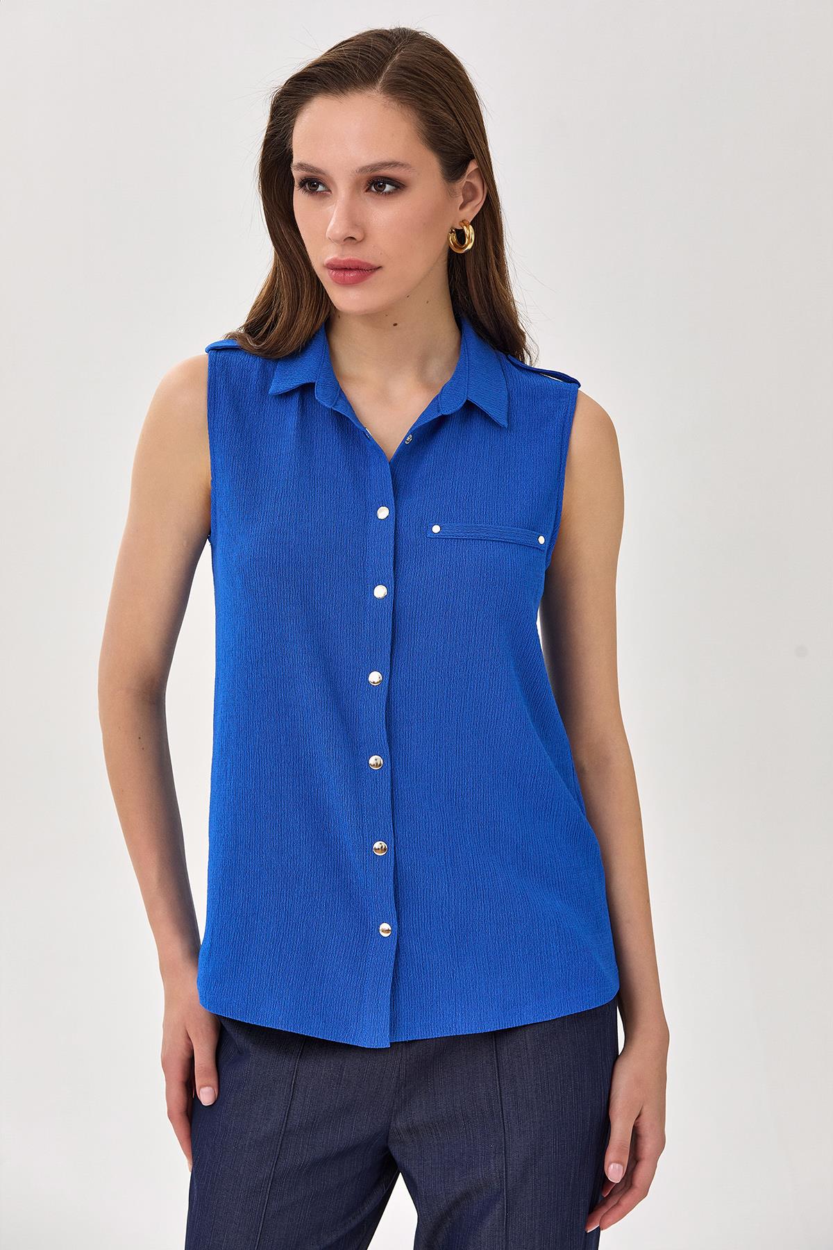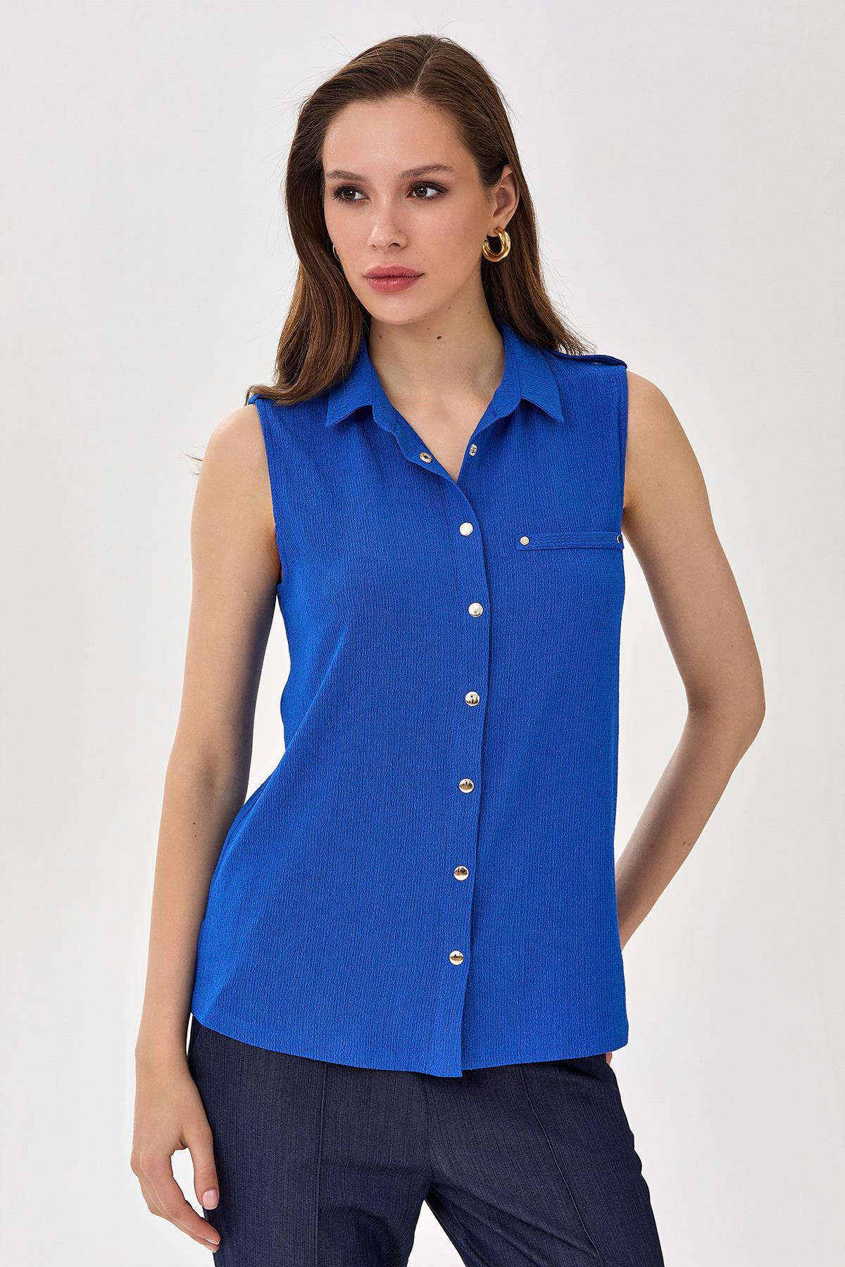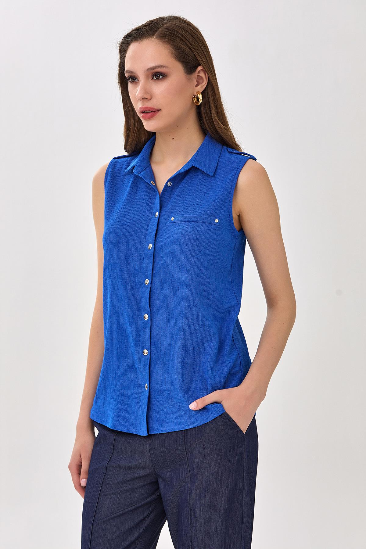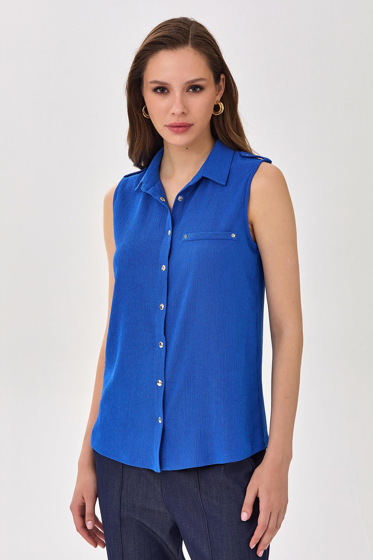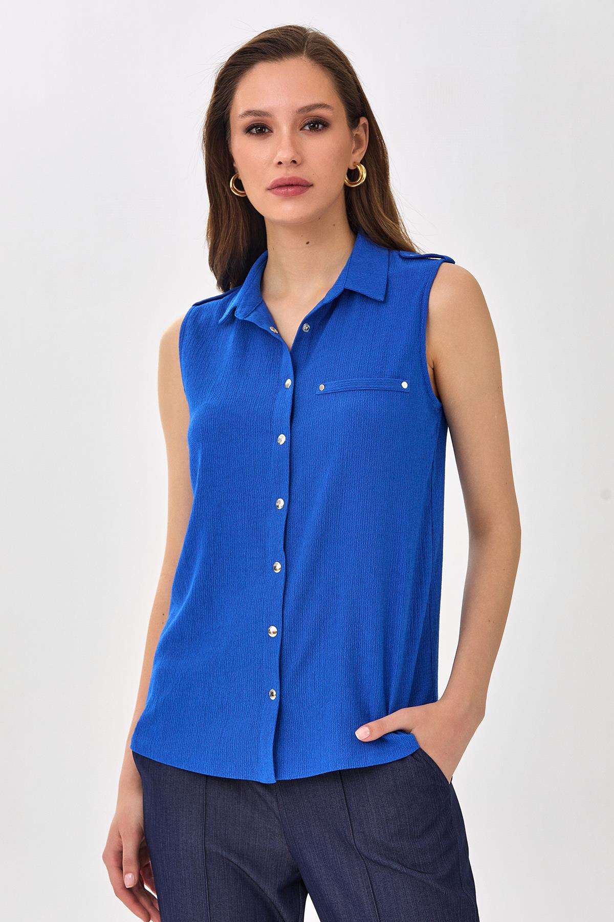 Polo Yaka Önü Çıtçıtlı Apoletli Bluz 025-1026 Polo Yaka Önü Çıtçıtlı Apoletli Bluz 025-1026