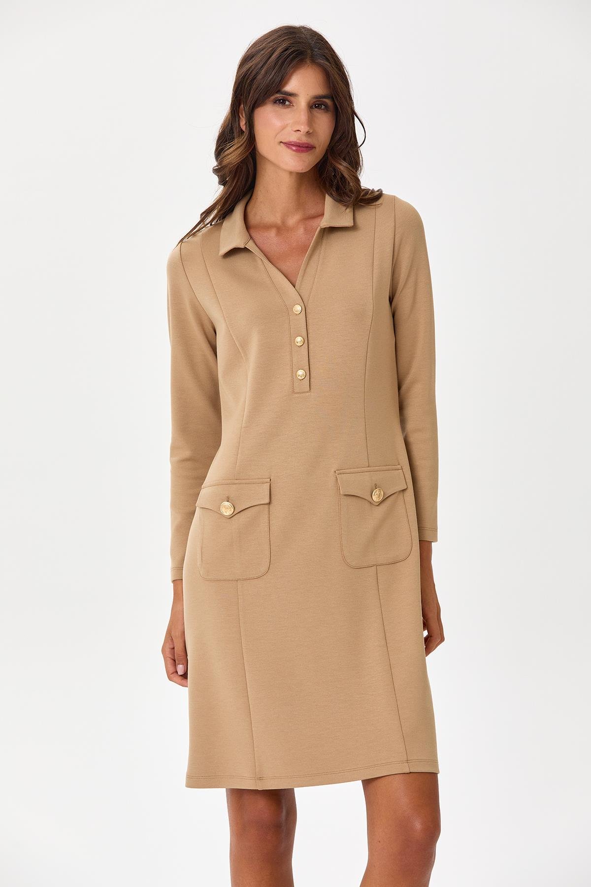 Polo Yaka Önü Düğmeli Cepli Elbise 245-2502