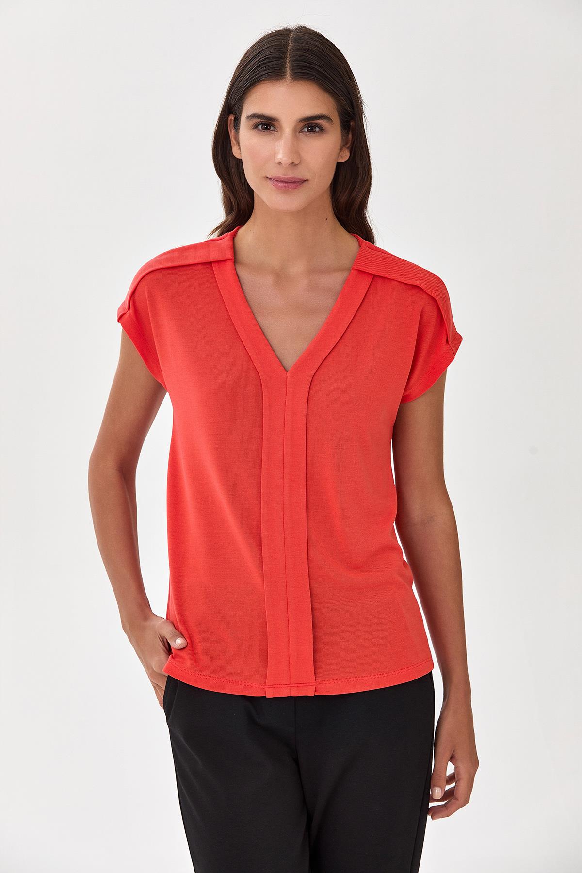 V Yaka Önü Patlı Düşük Kol Bluz 025-1013 V Yaka Önü Patlı Düşük Kol Bluz 025-1013