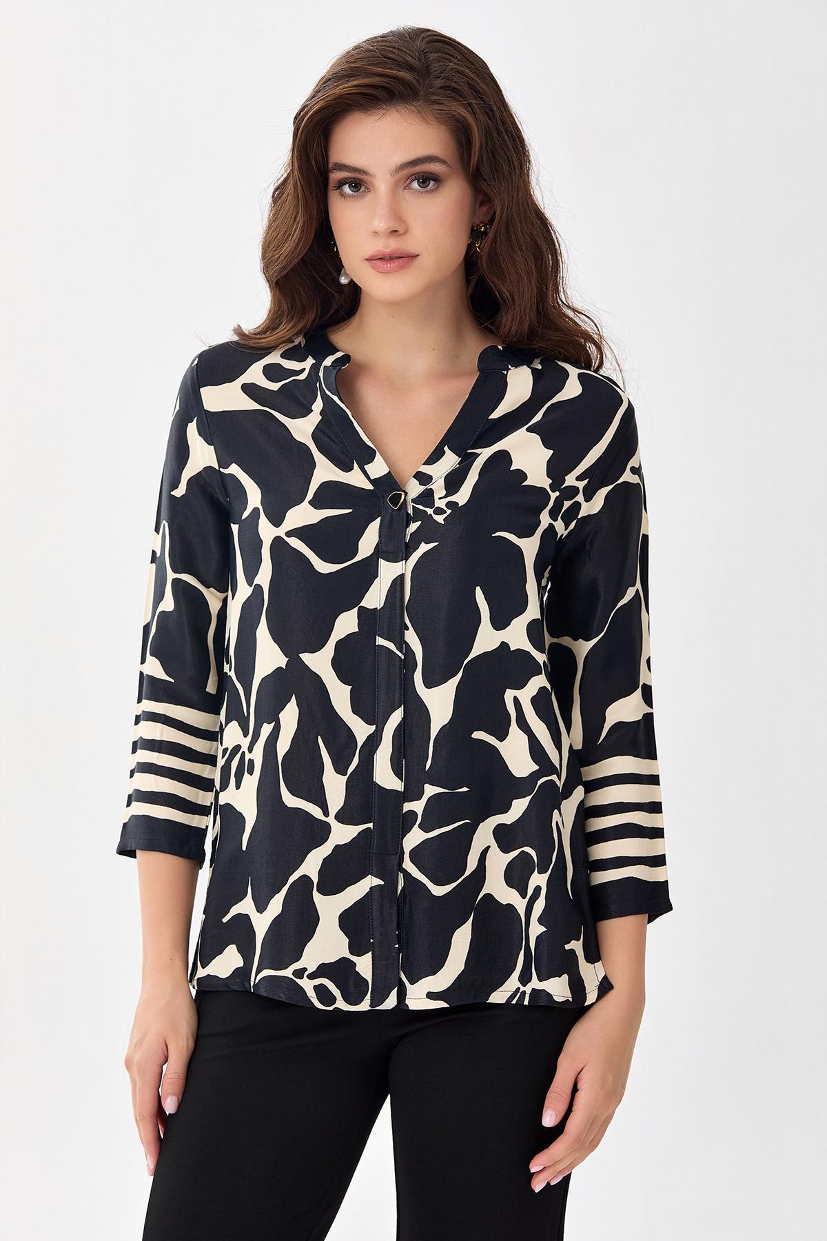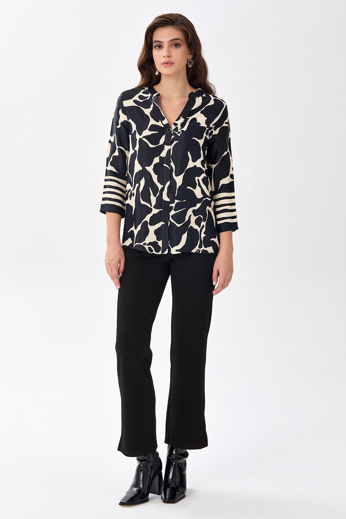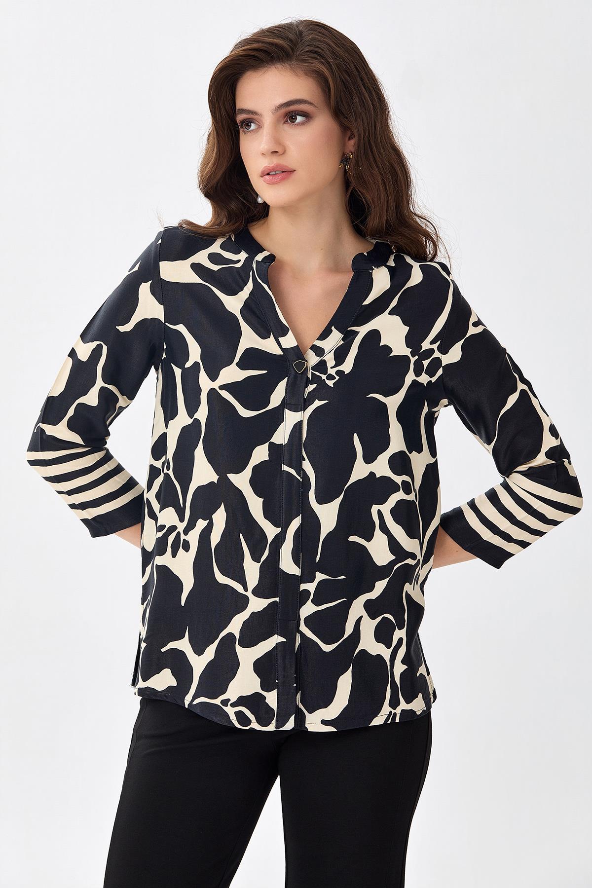 V Yaka Önü Patlı ¾ Kol Bluz 256-3005