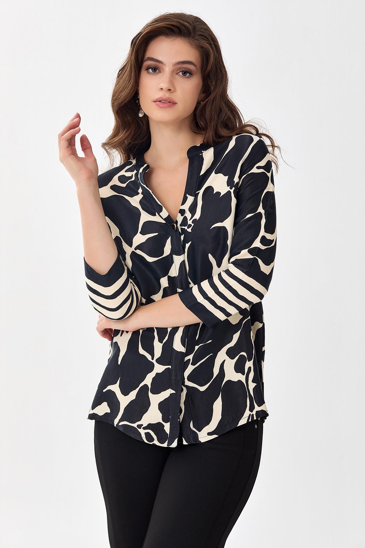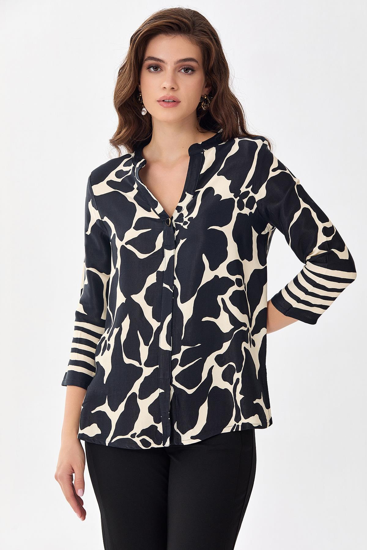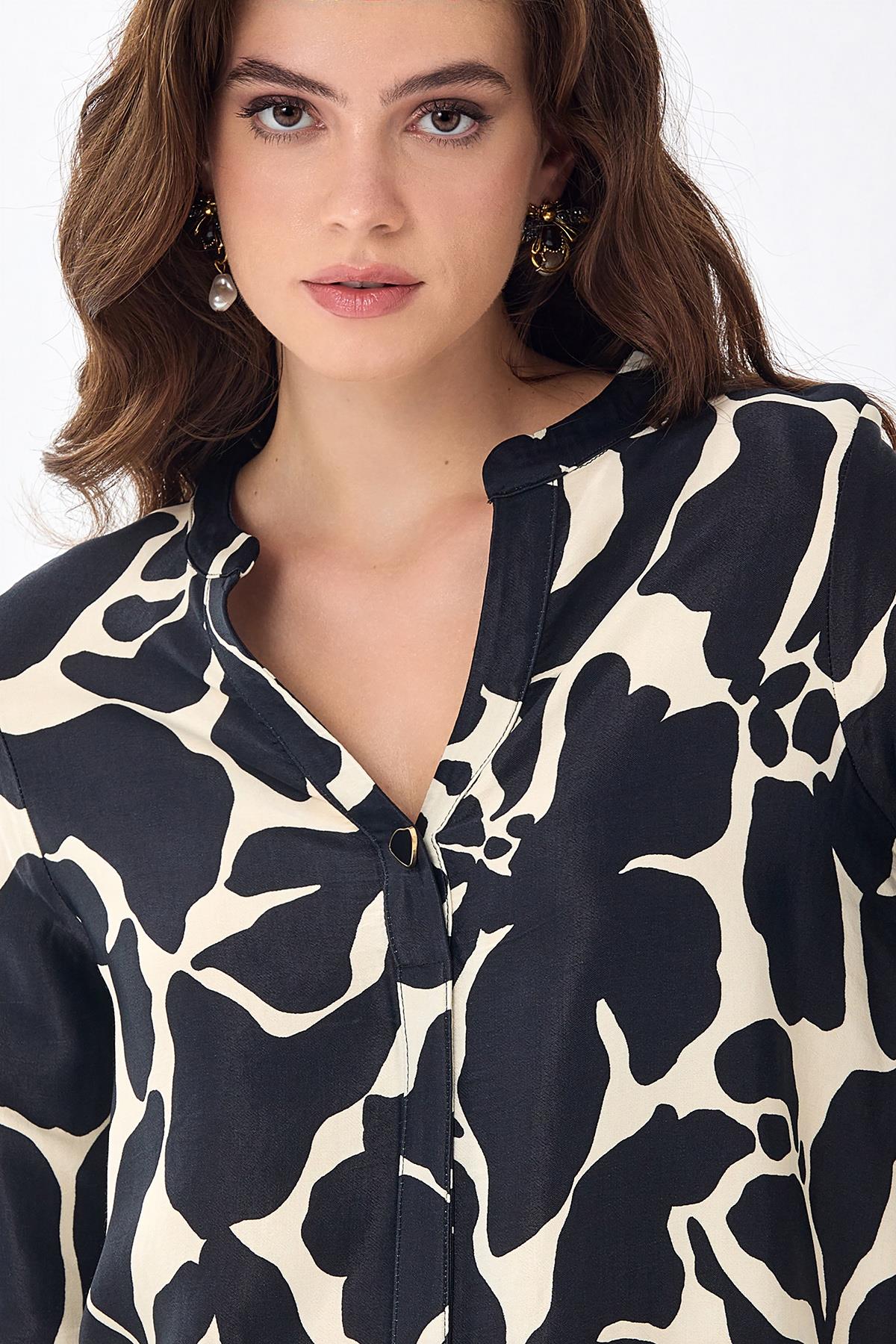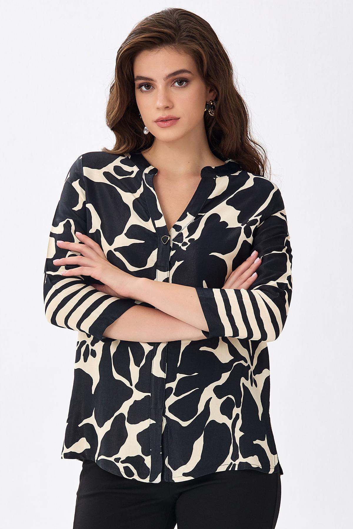 V Yaka Önü Patlı ¾ Kol Bluz 256-3005