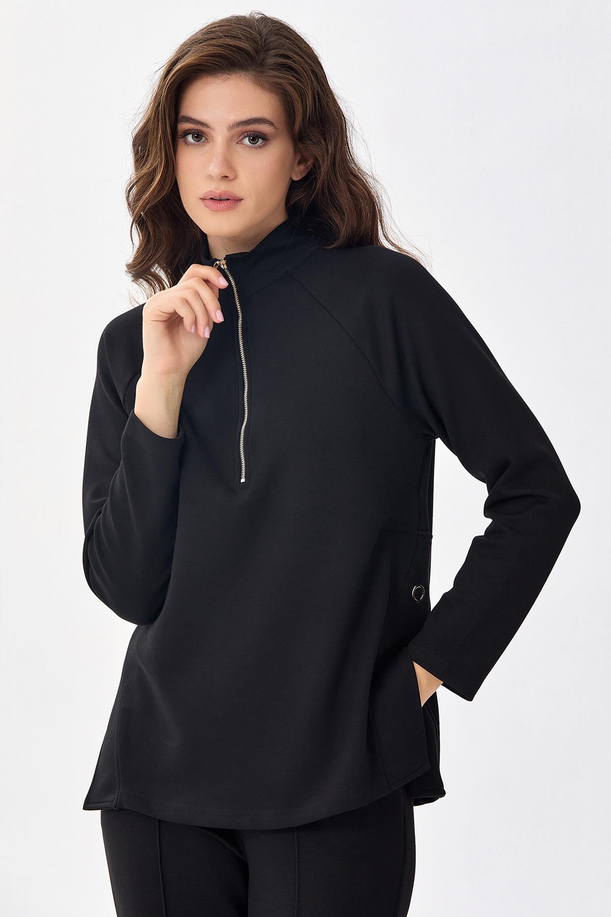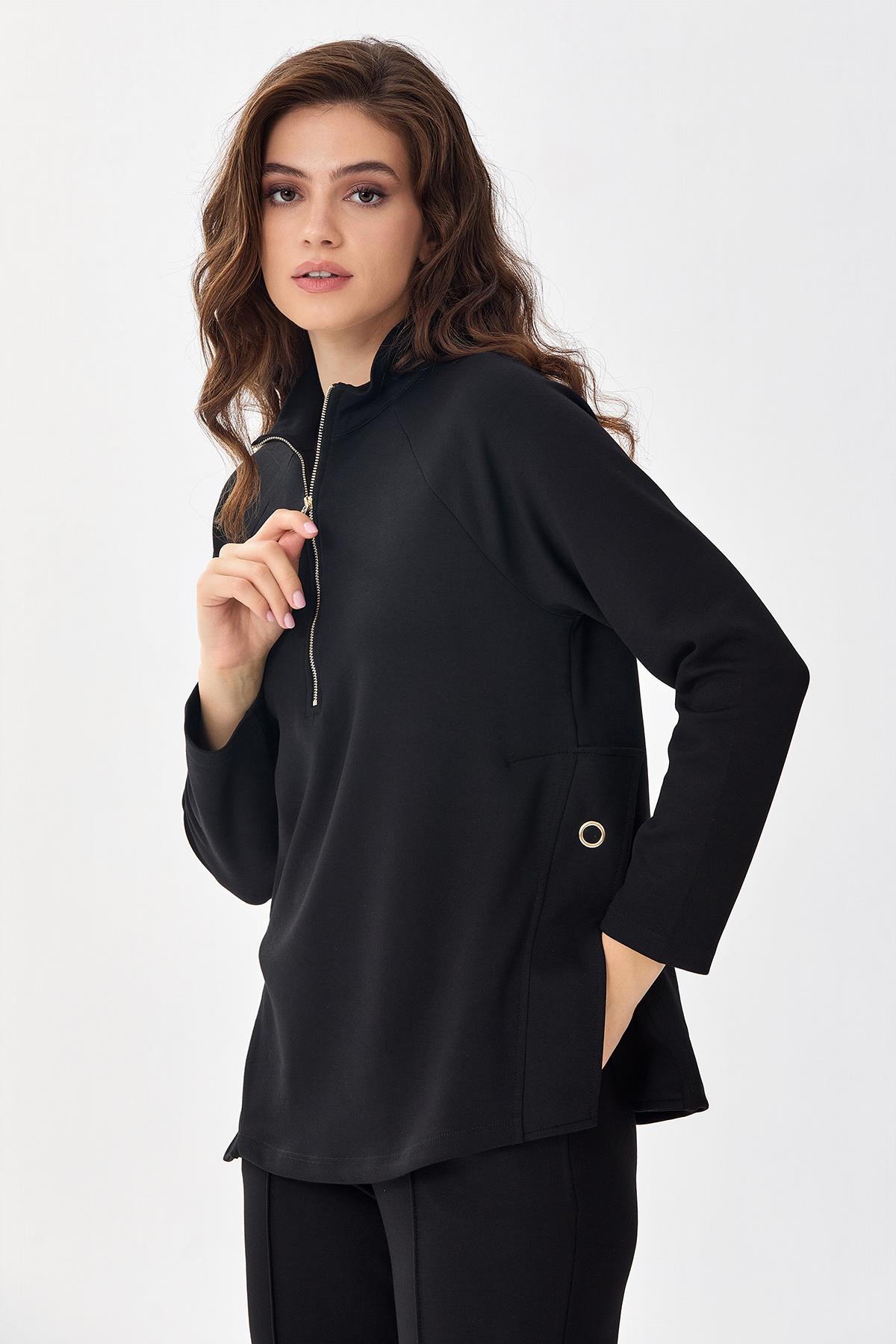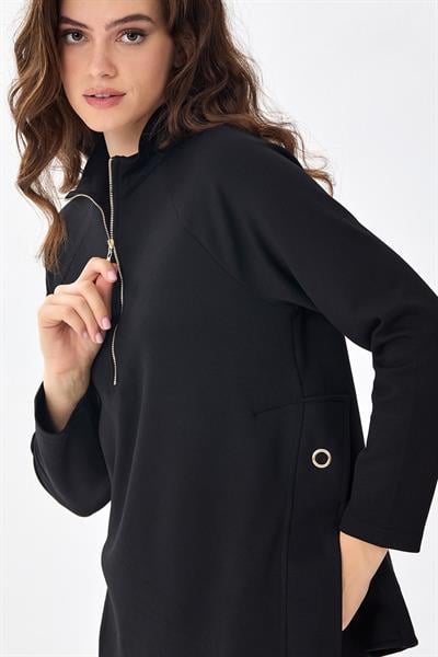 Yakası Fermuarlı Yanı Çıtçıt Detaylı S-Shirt 256-2100