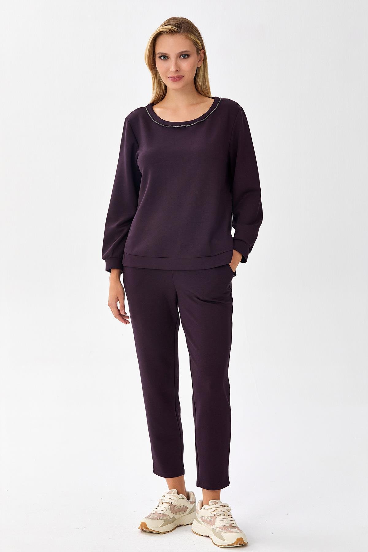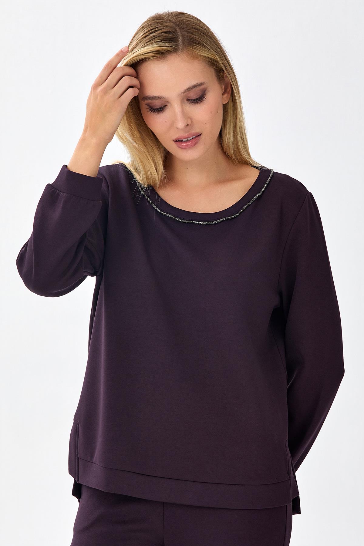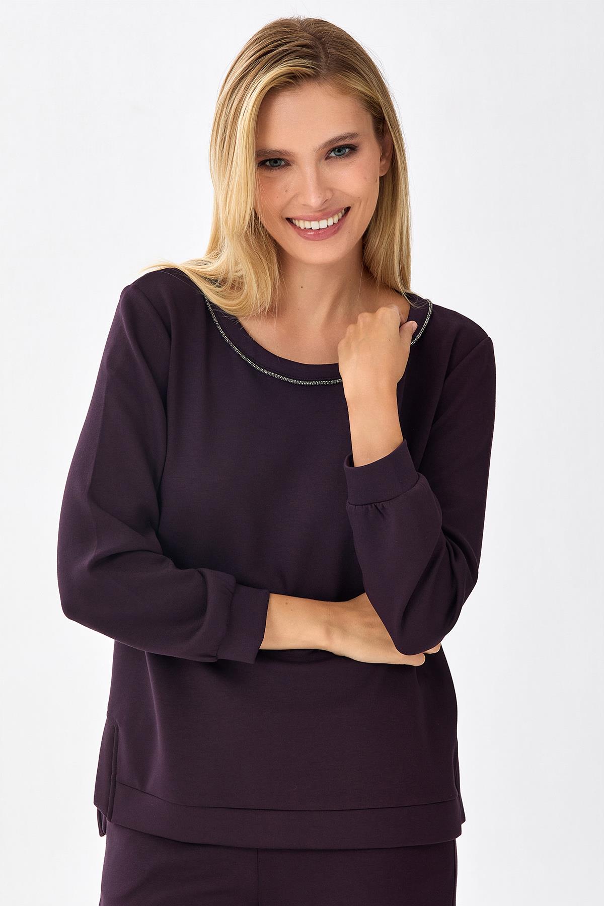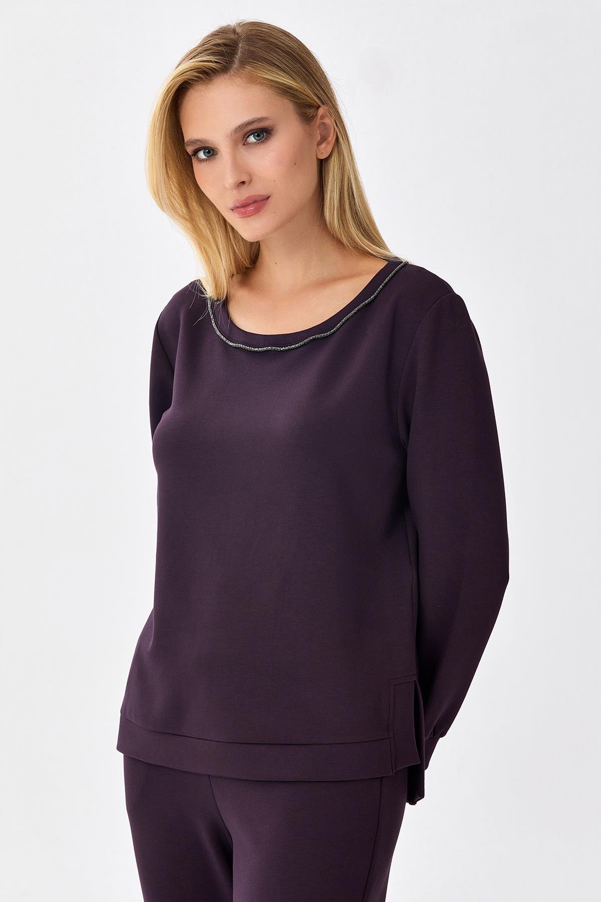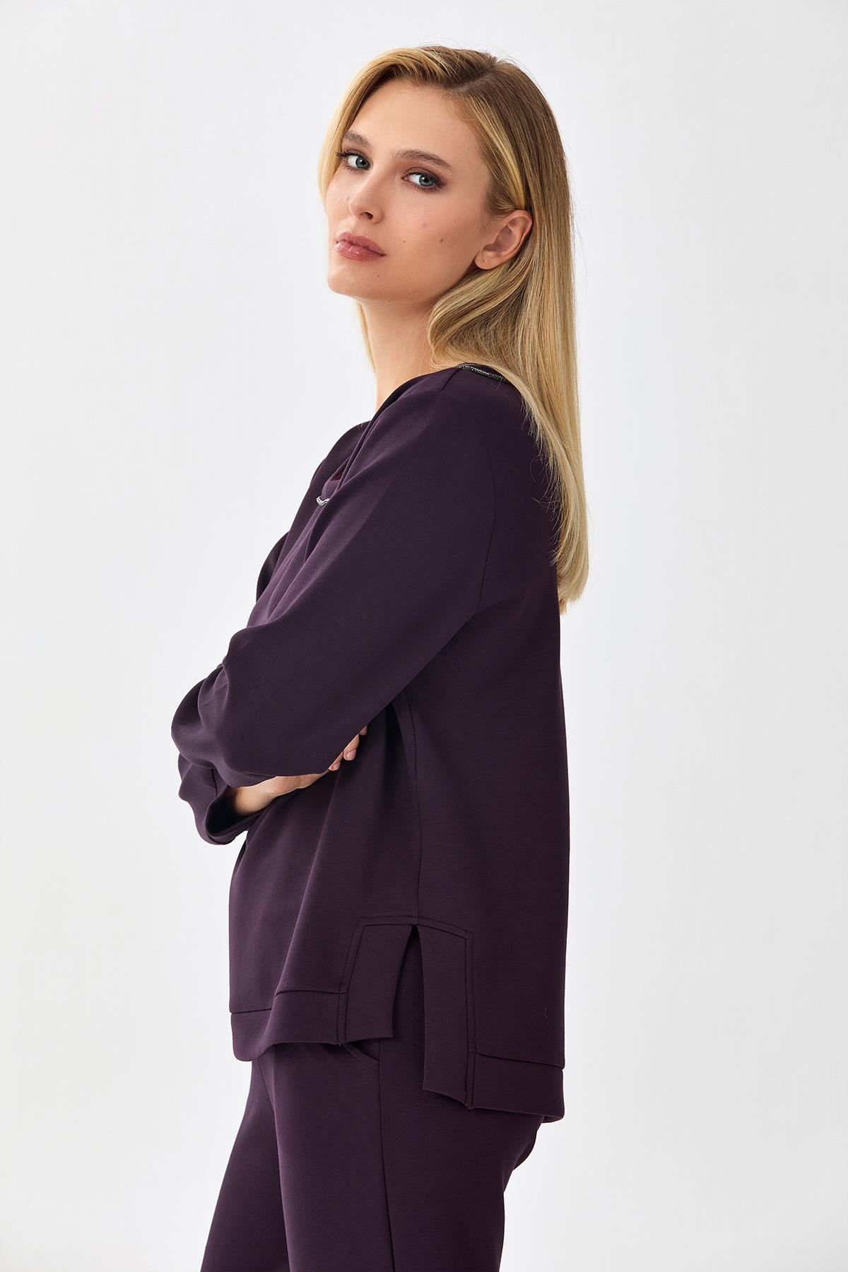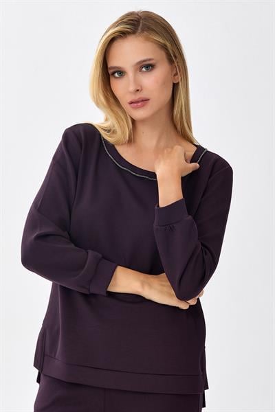 Yakası Taş Şeritli Yırtmaç Detaylı S-Shirt 256-2110 Yakası Taş Şeritli Yırtmaç Detaylı S-Shirt 256-2110
