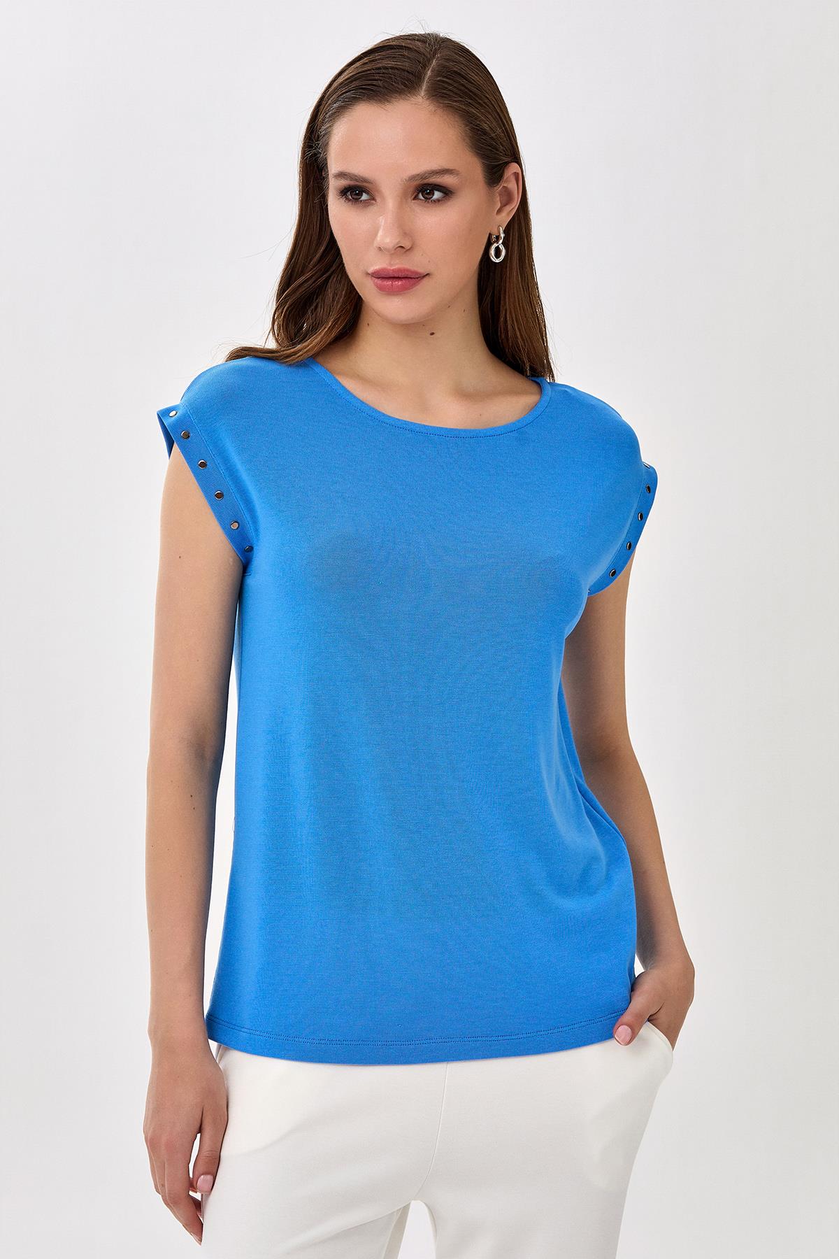 Yuvarlak Yaka Kolu Metal Aksesuarlı Bluz 025-1004