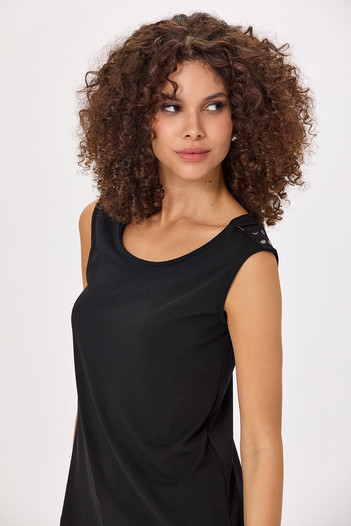 Yuvarlak Yaka Omuzu Toka Detaylı Bluz 025-1006