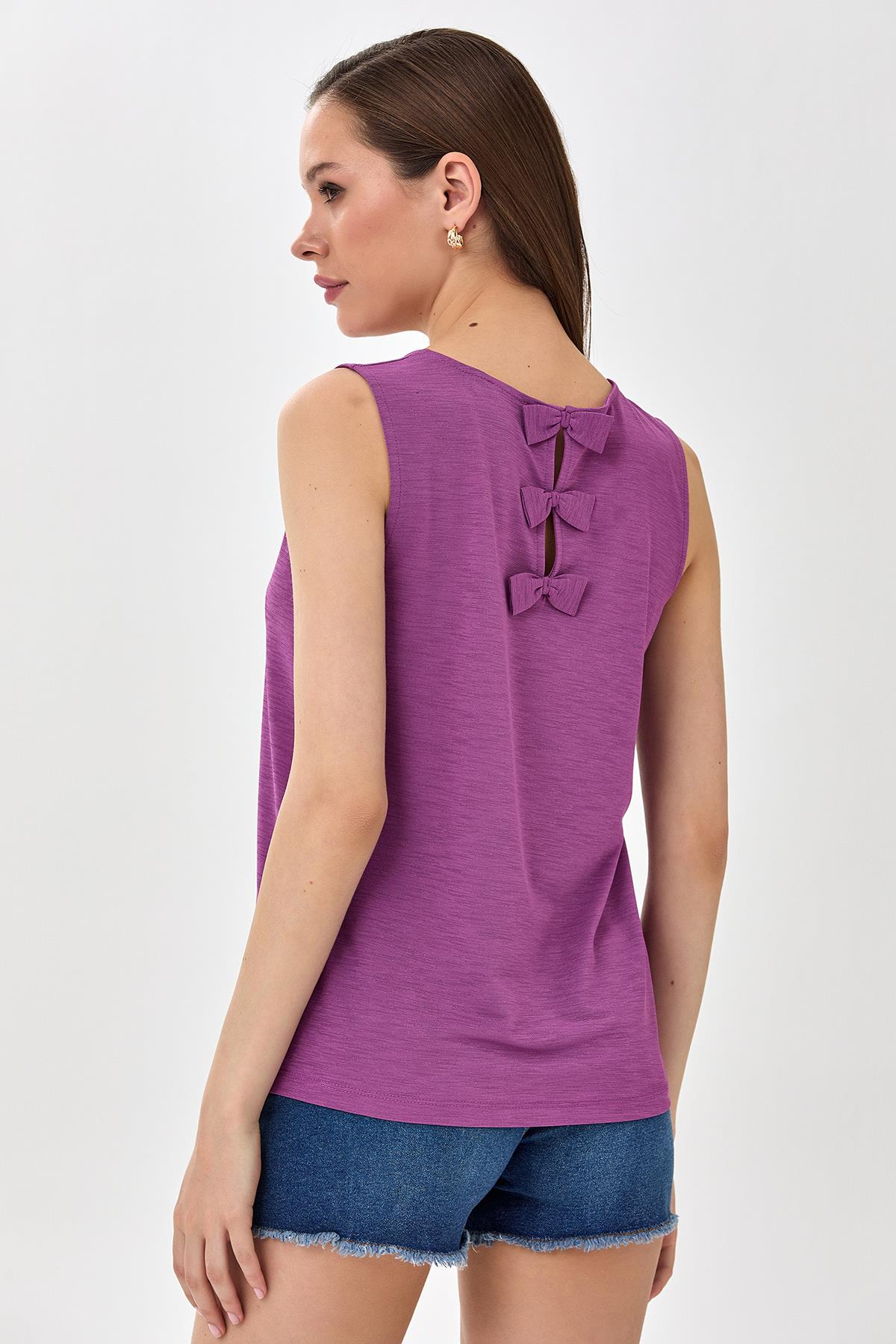 Yuvarlak Yaka Sırtı Fiyonk Detaylı Bluz 025-1023