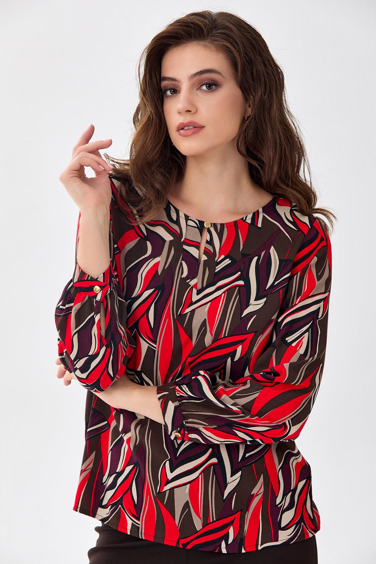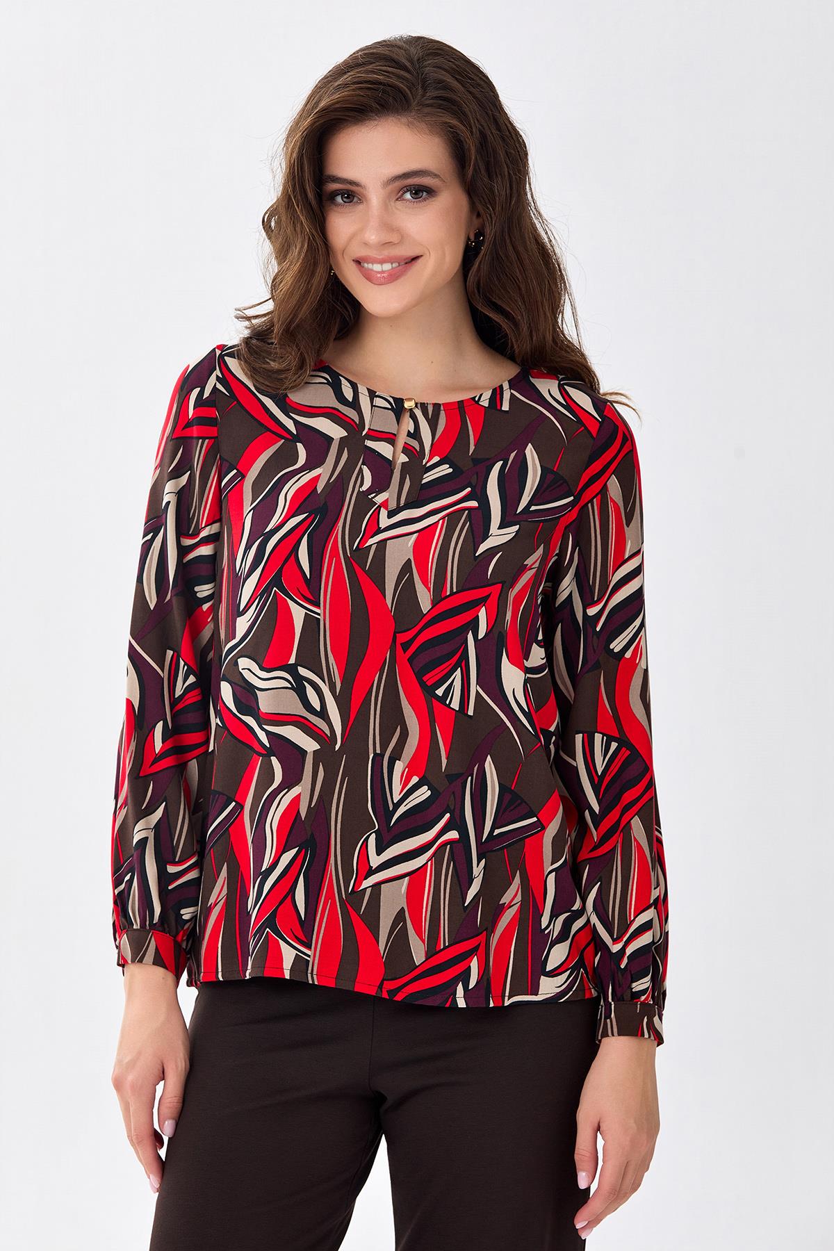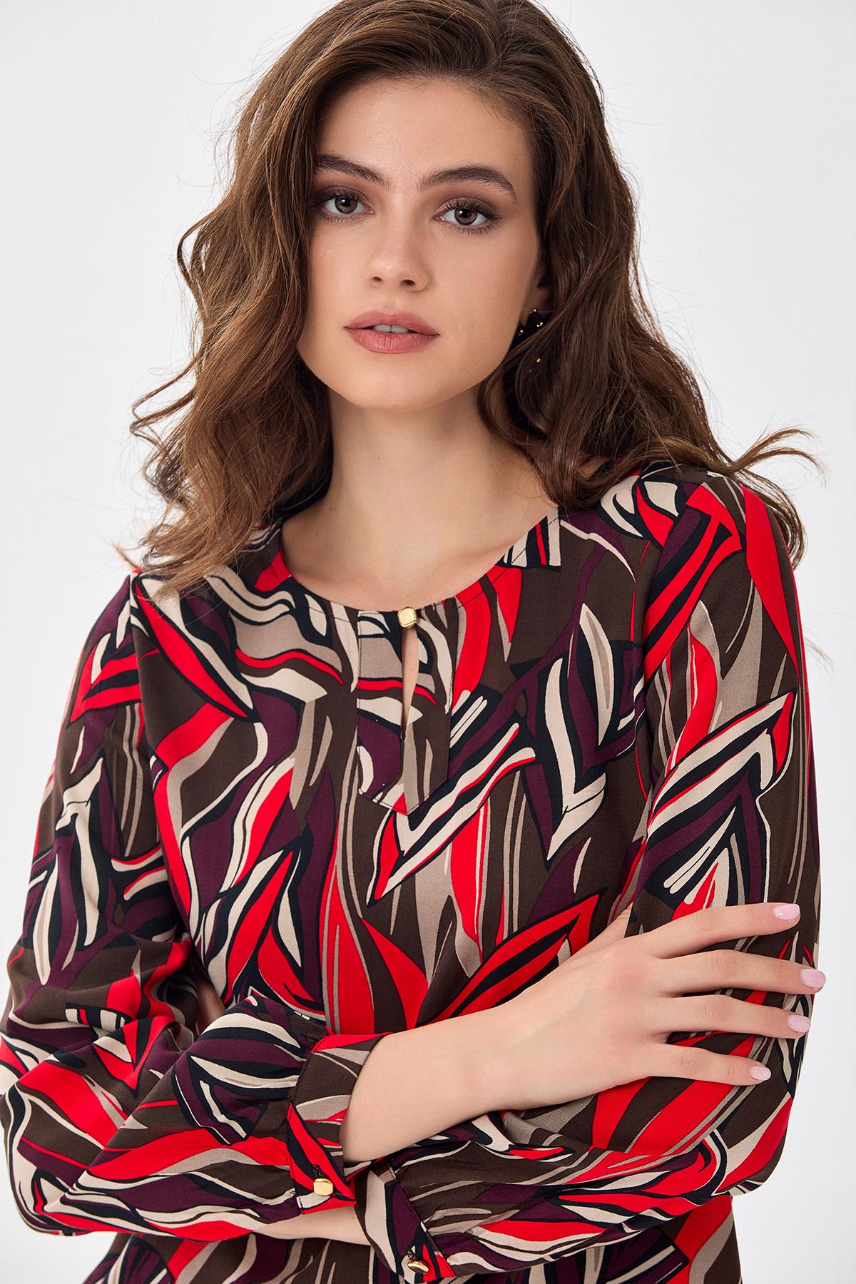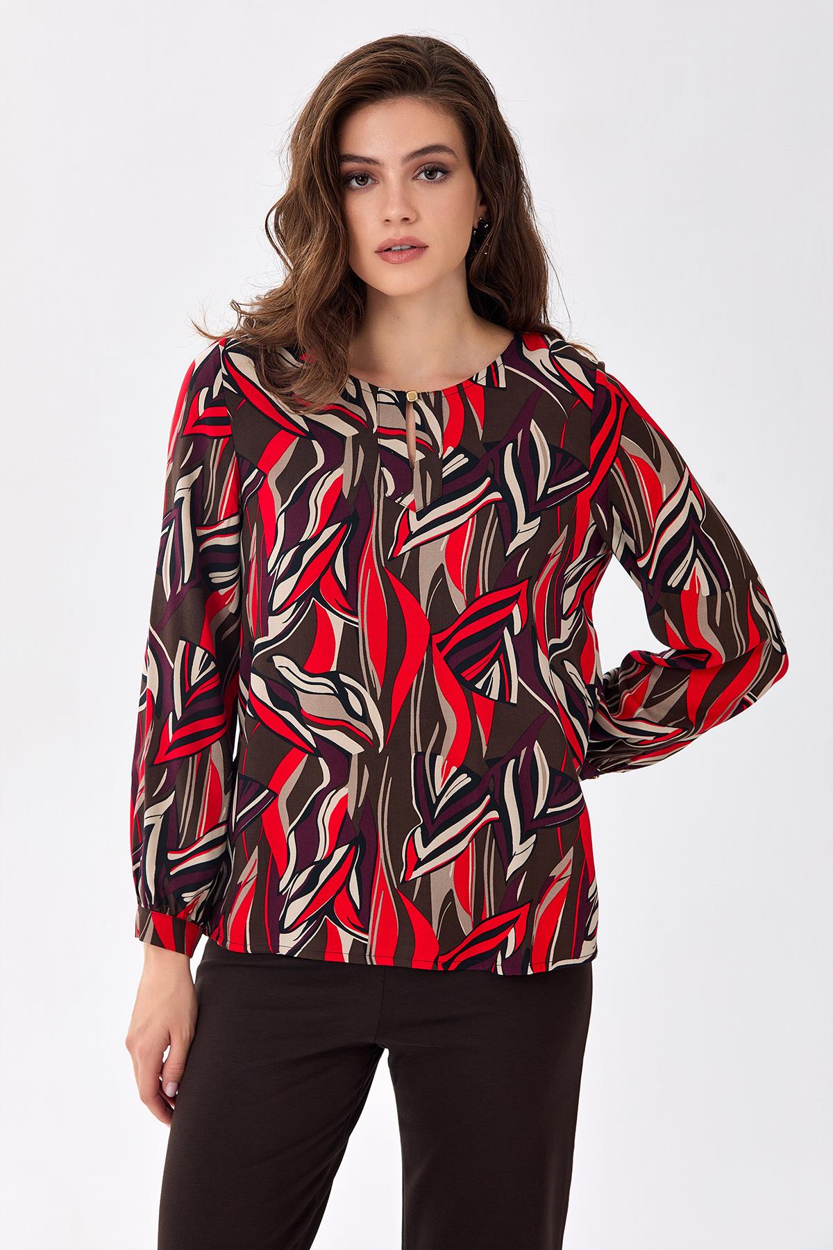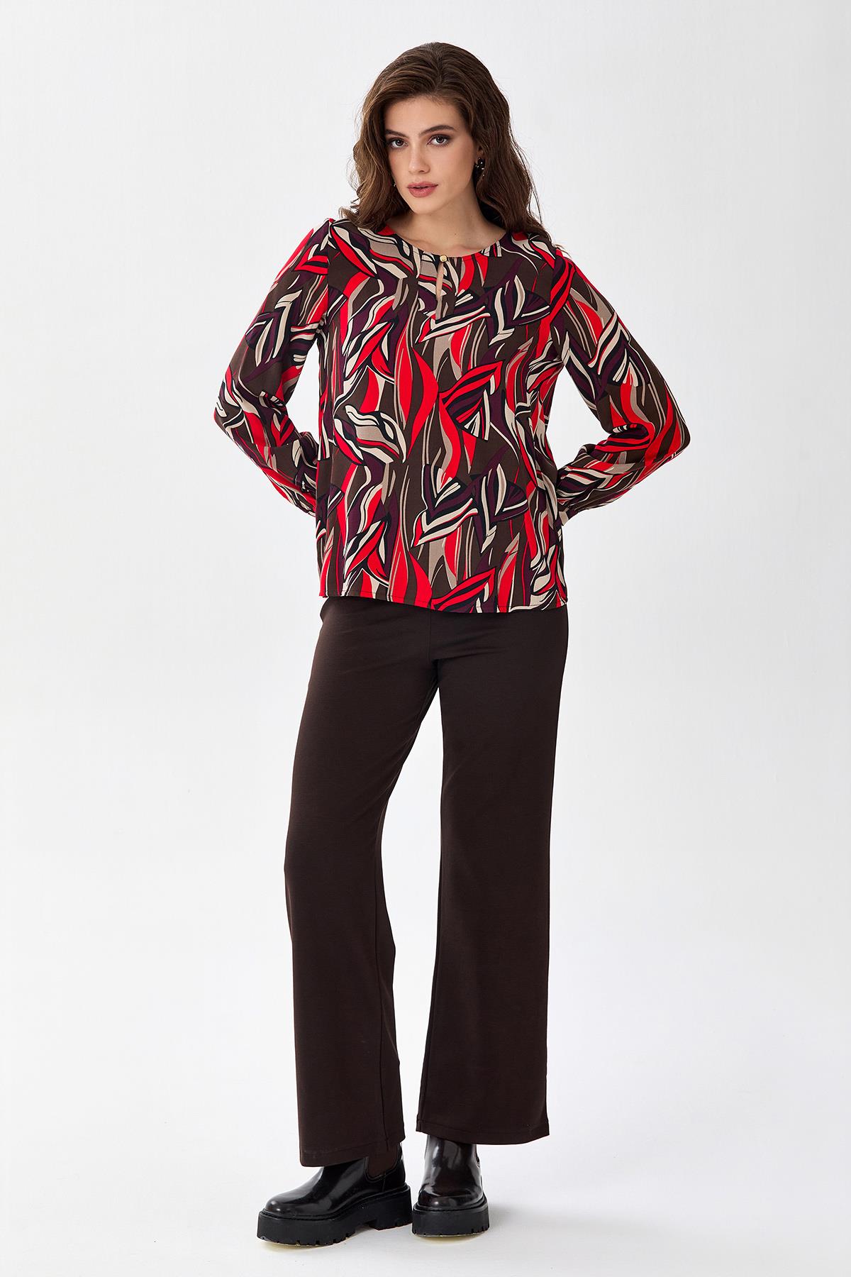 Yuvarlak Yaka Uzun Kol  Desenli Bluz 256-3021