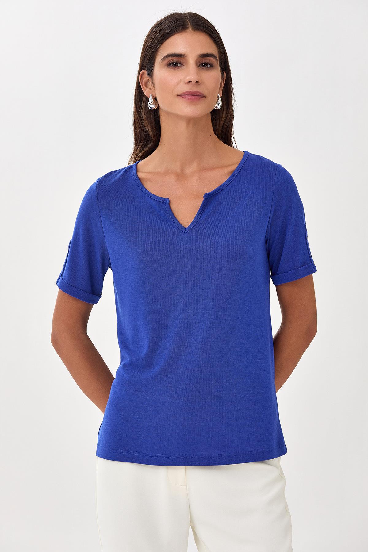 Yuvarlak Yakalı Mini Patlı Kısa Kol Bluz 025-1009 Yuvarlak Yakalı Mini Patlı Kısa Kol Bluz 025-1009